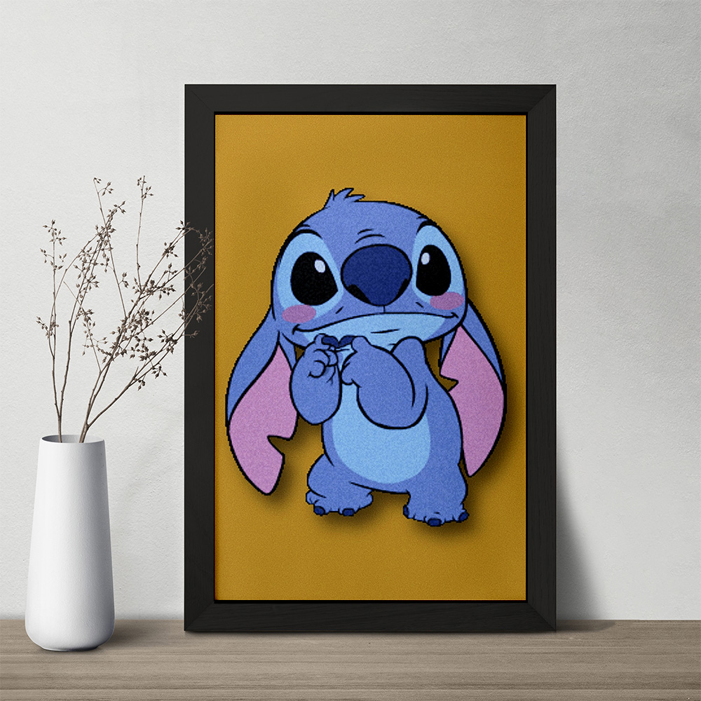 تابلو یا قاب عکس استیچ (Stitch) خندالو در ابعاد مختلف با استفاده از بهترین برند پروفیل پی وی سی دو سانتی متری بسیار مرغوب، تولید شده اند و در مونتاژ و نصب آنها نهایت دقت در قرارگیری هر چه دقیق تر لبه ها به یکدیگر صورت گرفته است. همچنین در پشت قاب ها گیره ای برای اتصال راحت به دیوار تعبیه شده است.