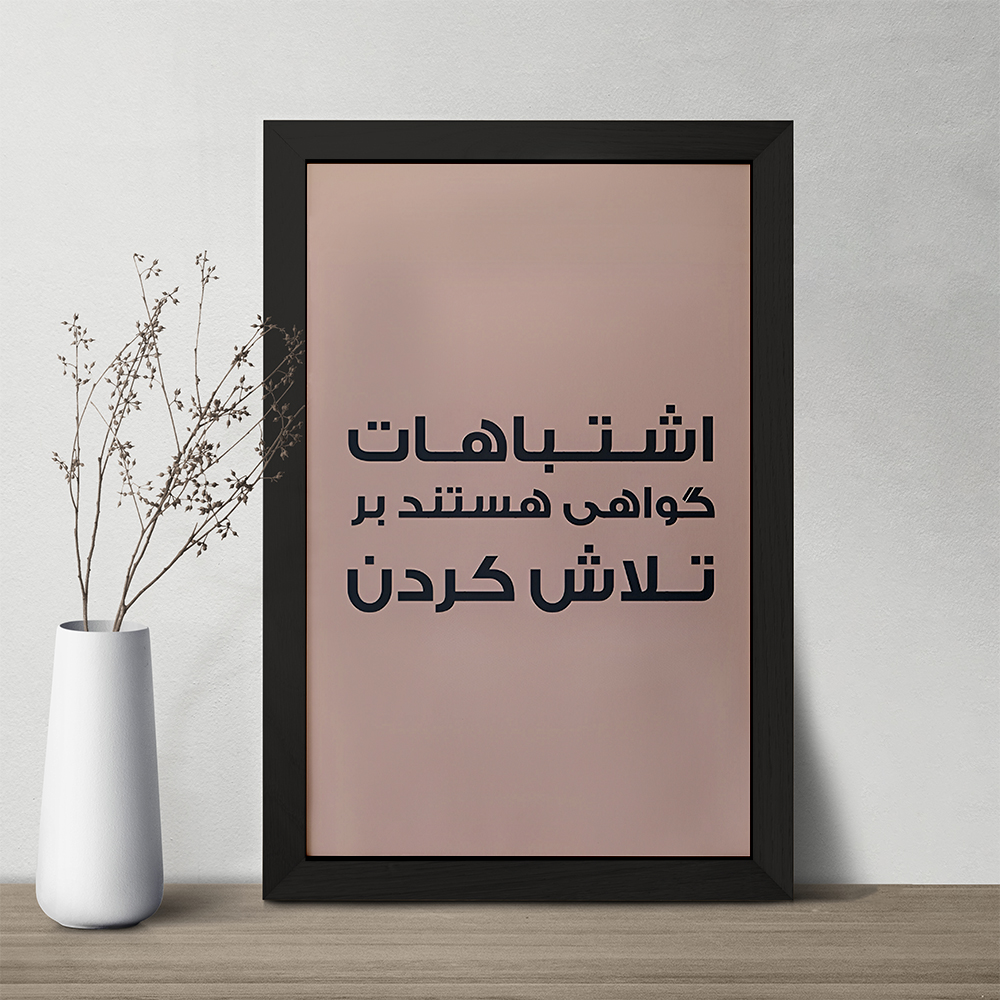 تابلو یا قاب عکس اشتباهات گواهی هستند بر تلاش کردن خندالو در ابعاد مختلف با استفاده از بهترین برند پروفیل پی وی سی دو سانتی متری بسیار مرغوب، تولید شده اند و در مونتاژ و نصب آنها نهایت دقت در قرارگیری هر چه دقیق تر لبه ها به یکدیگر صورت گرفته است. همچنین در پشت قاب ها گیره ای برای اتصال راحت به دیوار تعبیه شده است. چاپ طرح تابلوی اشتباهات گواهی هستند بر تلاش کردن با بالاترین کیفیت بوسیله چاپگرهای دیجیتال شش رنگ و کاغذ با کیفیت عکاسی انجام شده و بر روی آن شیشه ای با کیفیت و شفاف در سطح قاب قرار گرفته که از کاغذ عکس محافظت میکند. بسته بندی تابلوها جعبه های مقاوم و محکمی بوده که علاوه بر محافظتی که از بدنه قاب می کند، ظاهر جذابی دارد و تابلوی اشتباهات گواهی هستند بر تلاش کردن را بدل به محصولی مناسب هدیه کرده است. تابلوهای خندالو با تنوع طرحی بسیار بالا شامل تابلو های دکوراتیو قابل استفاده در اتاق کودک، محل کار و منازل می باشد که سلیقه هر مخاطبی را پوشش می دهد، ضمن اینکه امکان تعویض عکس موجود در قاب وجود داشته و می توان عکس های خانوادگی و … را نیز در آن قرار داد.