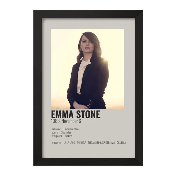 تابلو یا قاب عکس اما استون (Emma Stone) خندالو در ابعاد مختلف با استفاده از بهترین برند پروفیل پی وی سی دو سانتی متری بسیار مرغوب، تولید شده اند و در مونتاژ و نصب آنها نهایت دقت در قرارگیری هر چه دقیق تر لبه ها به یکدیگر صورت گرفته است. همچنین در پشت قاب ها گیره ای برای اتصال راحت به دیوار تعبیه شده است. چاپ طرح تابلوی اما استون (Emma Stone) با بالاترین کیفیت بوسیله چاپگرهای دیجیتال شش رنگ و کاغذ با کیفیت عکاسی انجام شده و بر روی آن شیشه ای با کیفیت و شفاف در سطح قاب قرار گرفته که از کاغذ عکس محافظت میکند. بسته بندی تابلوها جعبه های مقاوم و محکمی بوده که علاوه بر محافظتی که از بدنه قاب می کند، ظاهر جذابی دارد و تابلوی اما استون (Emma Stone) را بدل به محصولی مناسب هدیه کرده است. تابلوهای خندالو با تنوع طرحی بسیار بالا شامل تابلو های دکوراتیو قابل استفاده در اتاق کودک، محل کار و منازل می باشد که سلیقه هر مخاطبی را پوشش می دهد، ضمن اینکه امکان تعویض عکس موجود در قاب وجود داشته و می توان عکس های خانوادگی و … را نیز در آن قرار داد.