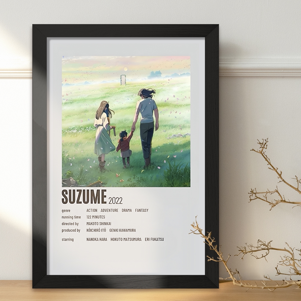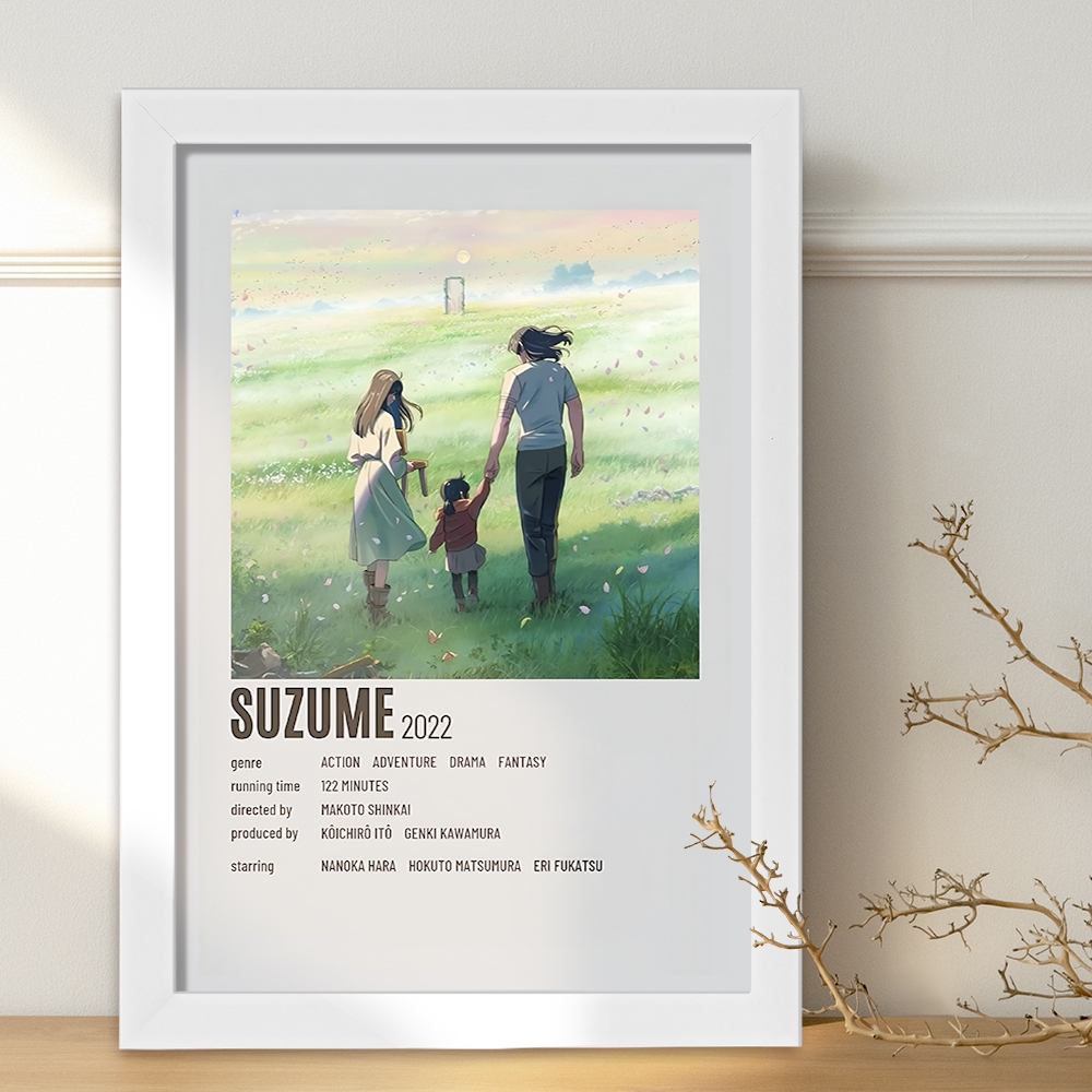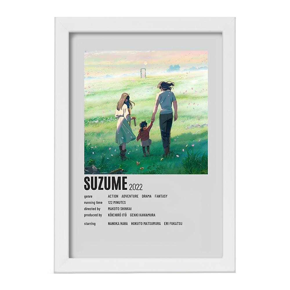 تابلو یا قاب عکس انیمه سوزومه (Suzume) خندالو در ابعاد مختلف با استفاده از بهترین برند پروفیل پی وی سی دو سانتی متری بسیار مرغوب، تولید شده اند و در مونتاژ و نصب آنها نهایت دقت در قرارگیری هر چه دقیق تر لبه ها به یکدیگر صورت گرفته است. همچنین در پشت قاب ها گیره ای برای اتصال راحت به دیوار تعبیه شده است.