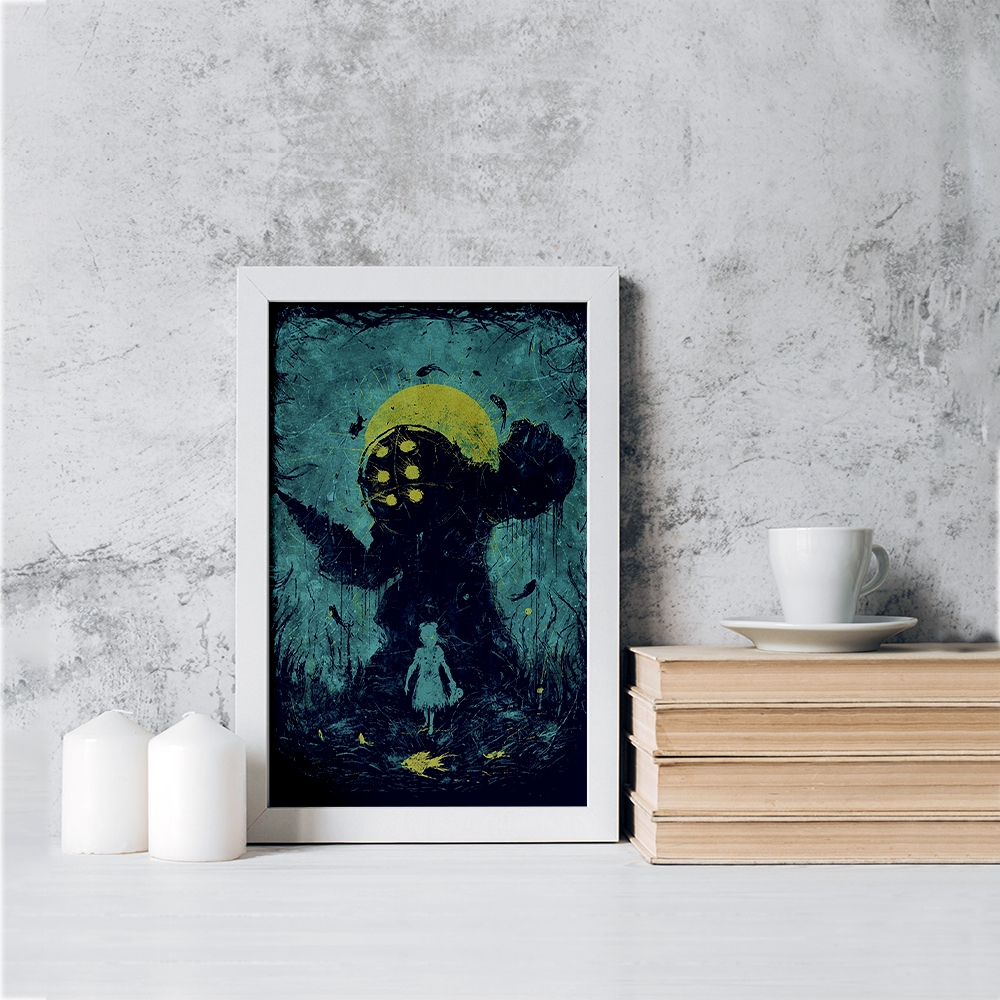 تابلو یا قاب عکس بازی بایوشاک (Bioshock) خندالو در ابعاد مختلف با استفاده از بهترین برند پروفیل پی وی سی دو سانتی متری بسیار مرغوب، تولید شده اند و در مونتاژ و نصب آنها نهایت دقت در قرارگیری هر چه دقیق تر لبه ها به یکدیگر صورت گرفته است. همچنین در پشت قاب ها گیره ای برای اتصال راحت به دیوار تعبیه شده است.