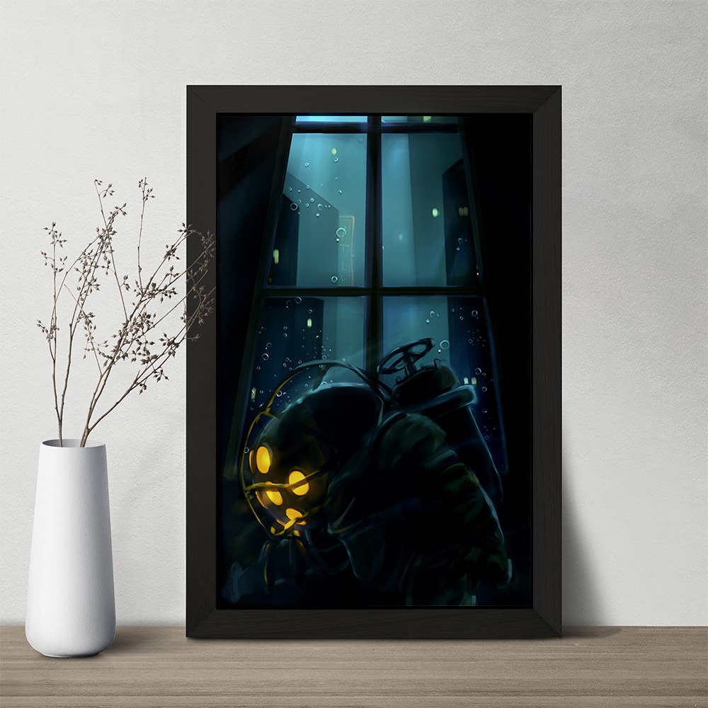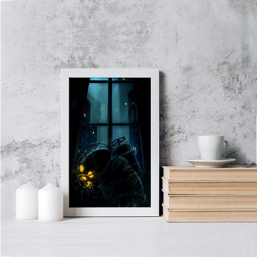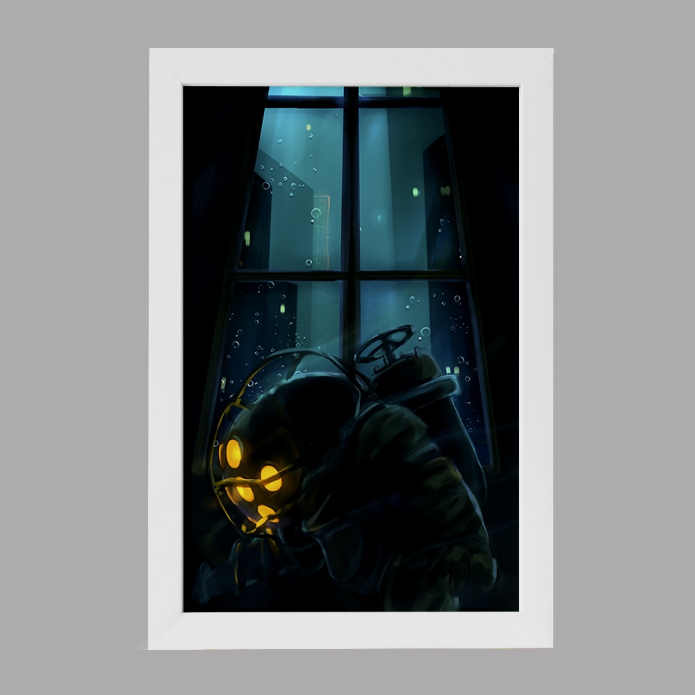 تابلو یا قاب عکس بازی بایوشاک (Bioshock) خندالو در ابعاد مختلف با استفاده از بهترین برند پروفیل پی وی سی دو سانتی متری بسیار مرغوب، تولید شده اند و در مونتاژ و نصب آنها نهایت دقت در قرارگیری هر چه دقیق تر لبه ها به یکدیگر صورت گرفته است. همچنین در پشت قاب ها گیره ای برای اتصال راحت به دیوار تعبیه شده است.
