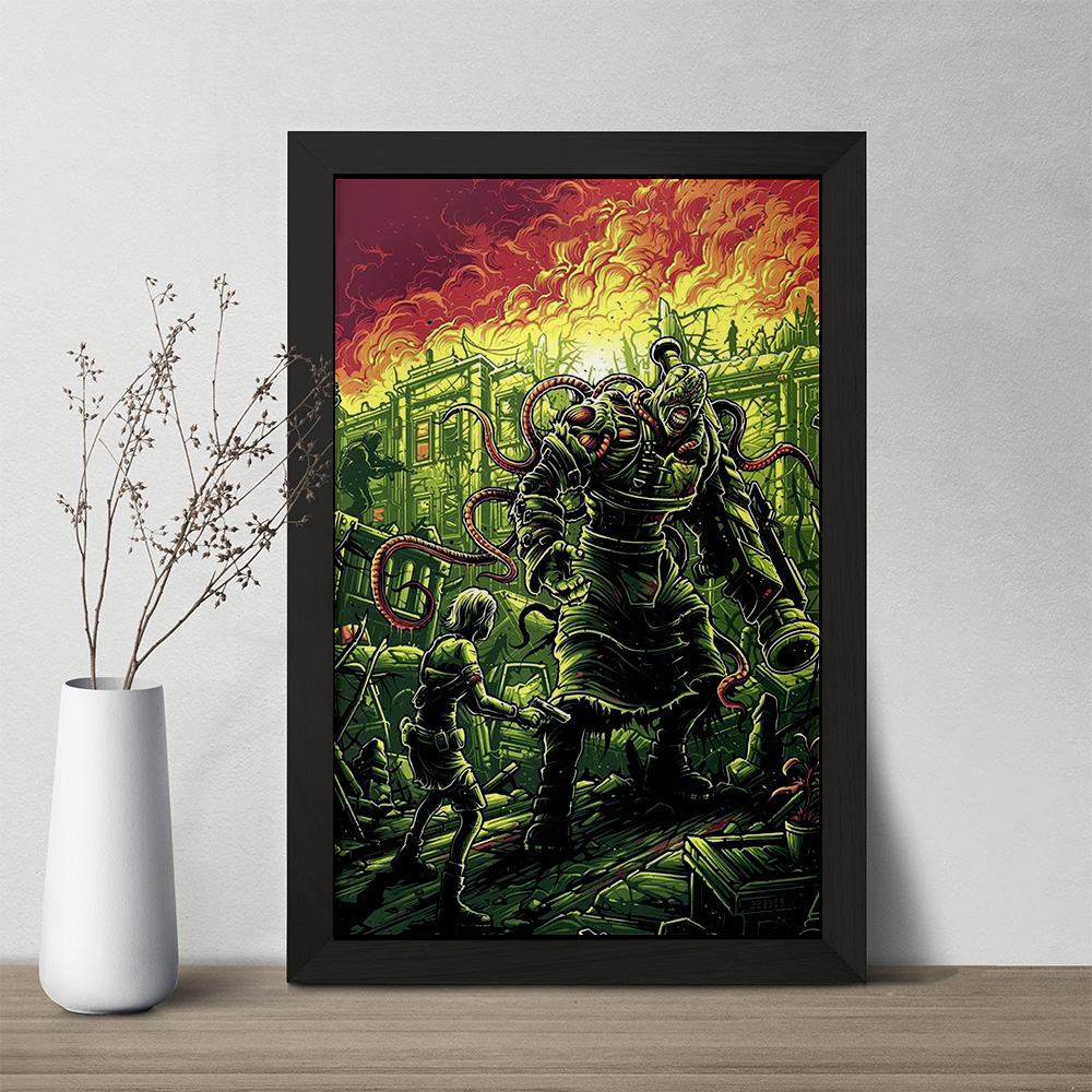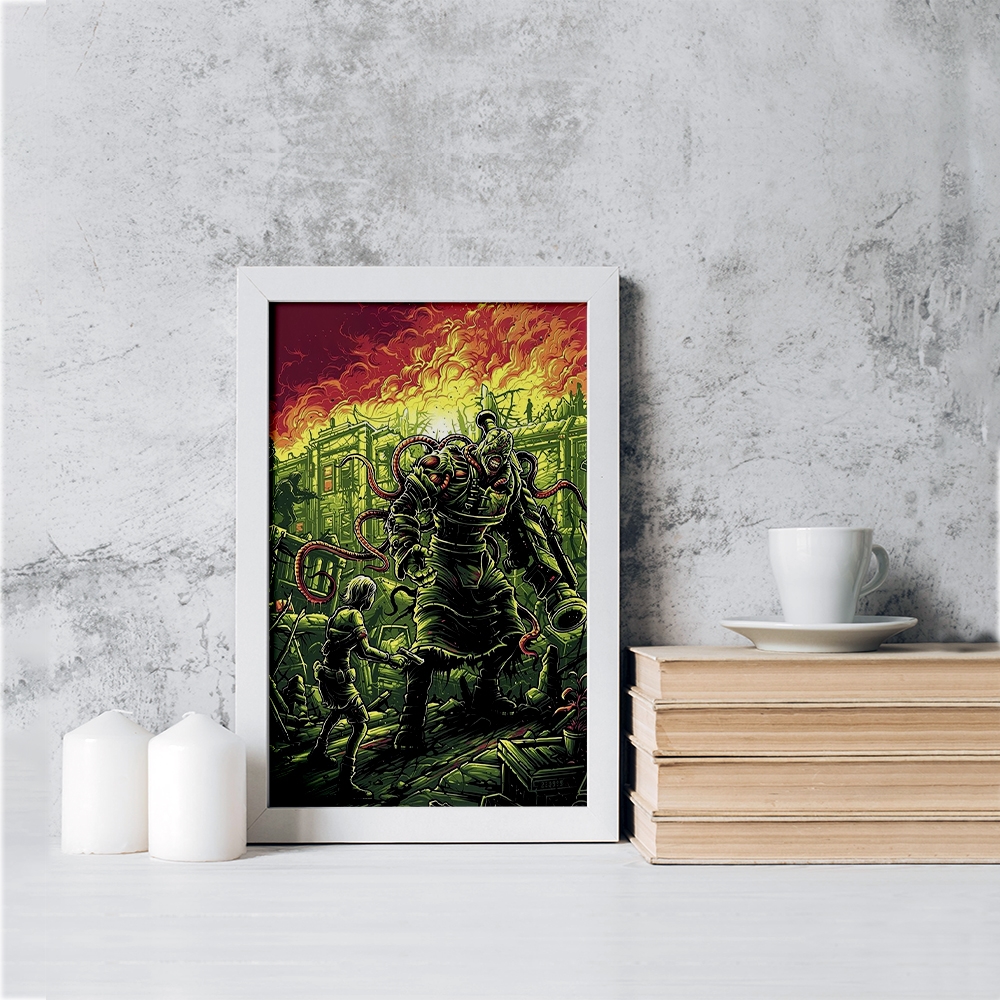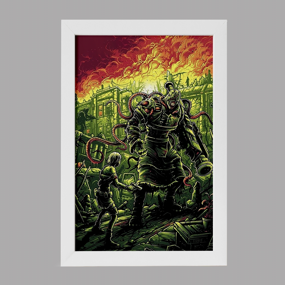 تابلو یا قاب عکس بازی رزیدنت اویل (Resident Evil) خندالو در ابعاد مختلف با استفاده از بهترین برند پروفیل پی وی سی دو سانتی متری بسیار مرغوب، تولید شده اند و در مونتاژ و نصب آنها نهایت دقت در قرارگیری هر چه دقیق تر لبه ها به یکدیگر صورت گرفته است. همچنین در پشت قاب ها گیره ای برای اتصال راحت به دیوار تعبیه شده است.
