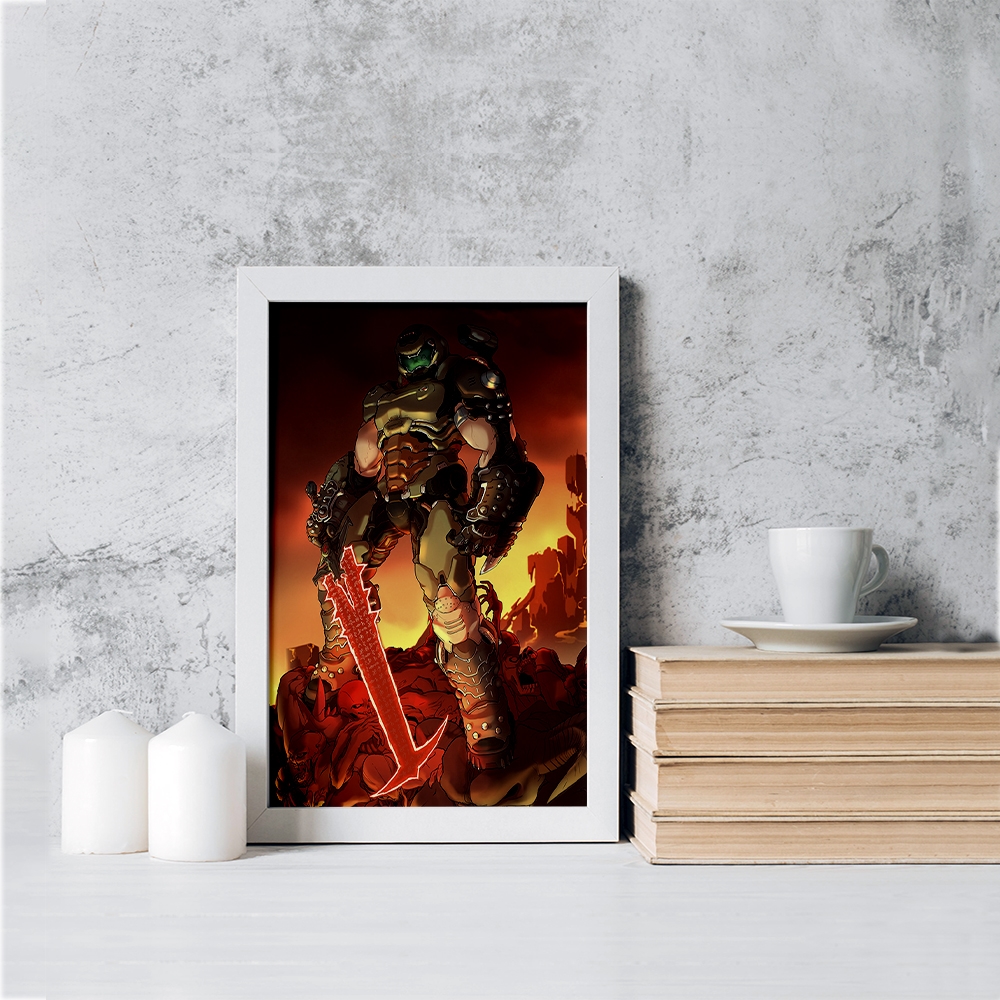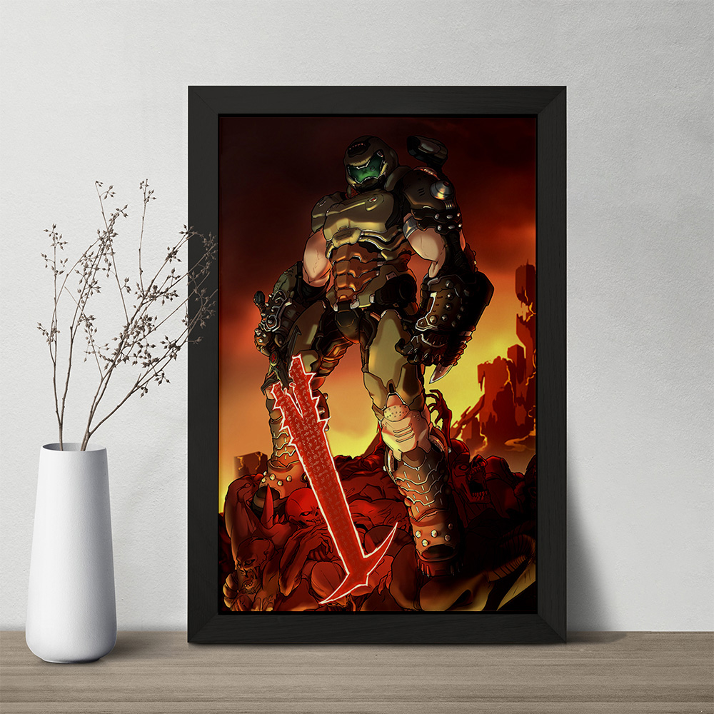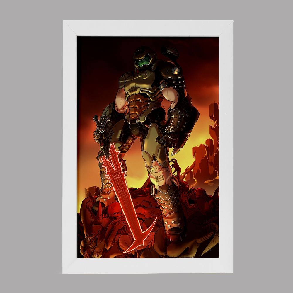 تابلو یا قاب عکس بازی رستاخیز (Doom) خندالو در ابعاد مختلف با استفاده از بهترین برند پروفیل پی وی سی دو سانتی متری بسیار مرغوب، تولید شده اند و در مونتاژ و نصب آنها نهایت دقت در قرارگیری هر چه دقیق تر لبه ها به یکدیگر صورت گرفته است. همچنین در پشت قاب ها گیره ای برای اتصال راحت به دیوار تعبیه شده است.