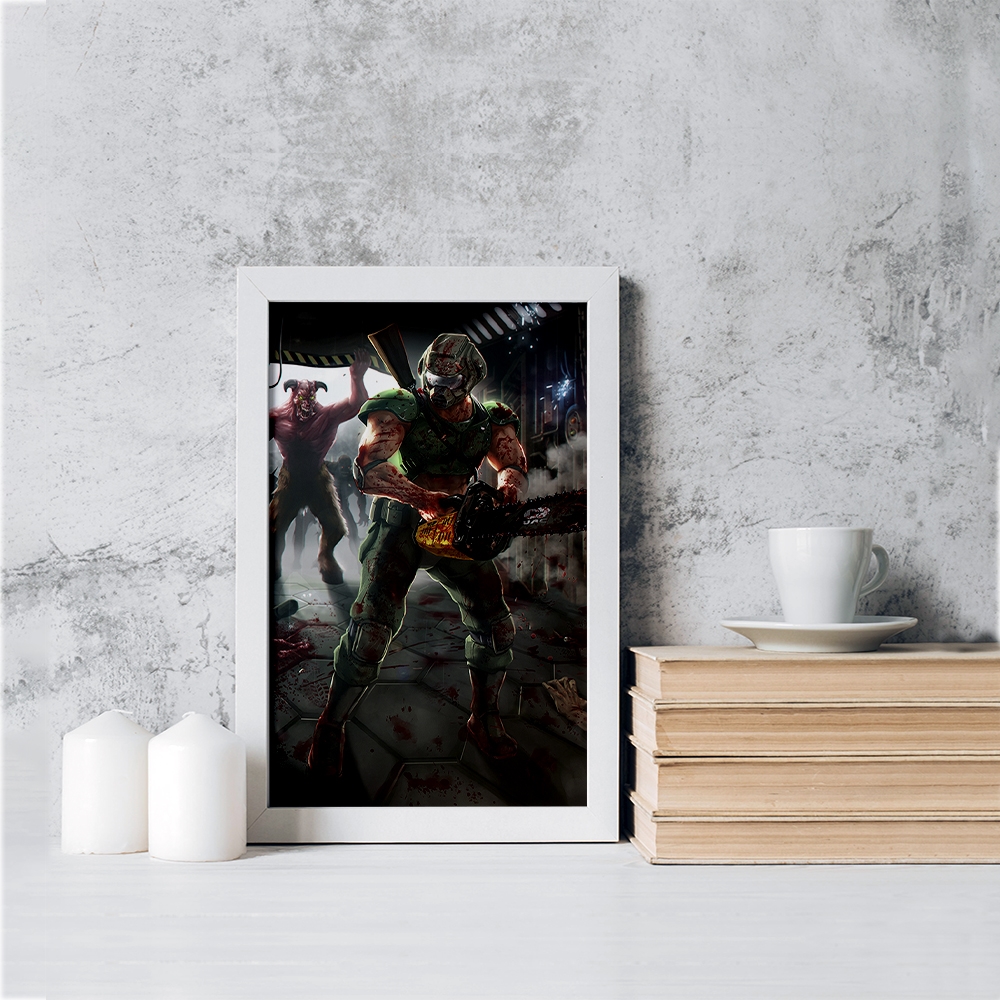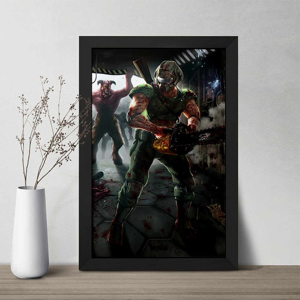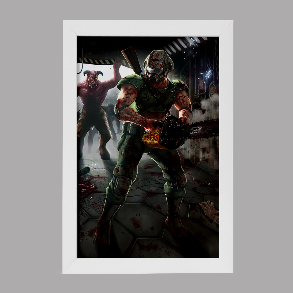 تابلو یا قاب عکس بازی رستاخیز (Doom) خندالو در ابعاد مختلف با استفاده از بهترین برند پروفیل پی وی سی دو سانتی متری بسیار مرغوب، تولید شده اند و در مونتاژ و نصب آنها نهایت دقت در قرارگیری هر چه دقیق تر لبه ها به یکدیگر صورت گرفته است. همچنین در پشت قاب ها گیره ای برای اتصال راحت به دیوار تعبیه شده است.