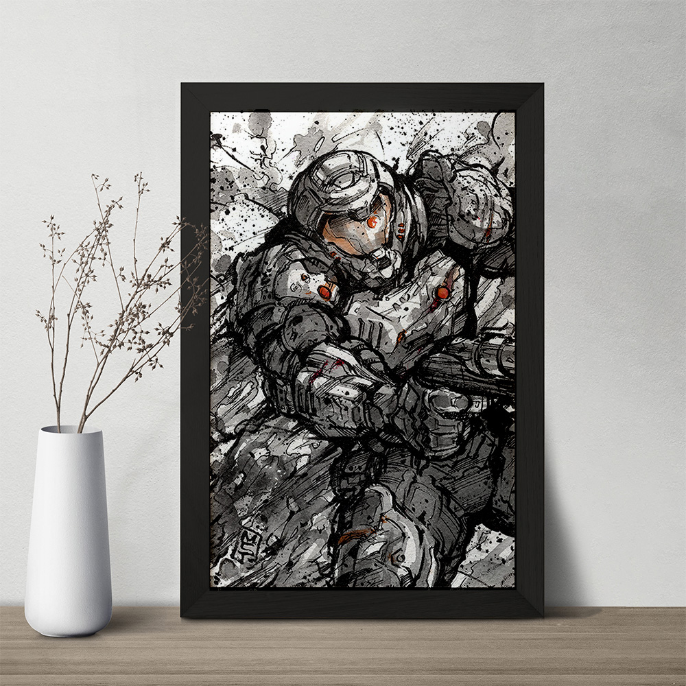 تابلو یا قاب عکس بازی رستاخیز (Doom) خندالو در ابعاد مختلف با استفاده از بهترین برند پروفیل پی وی سی دو سانتی متری بسیار مرغوب، تولید شده اند و در مونتاژ و نصب آنها نهایت دقت در قرارگیری هر چه دقیق تر لبه ها به یکدیگر صورت گرفته است. همچنین در پشت قاب ها گیره ای برای اتصال راحت به دیوار تعبیه شده است.