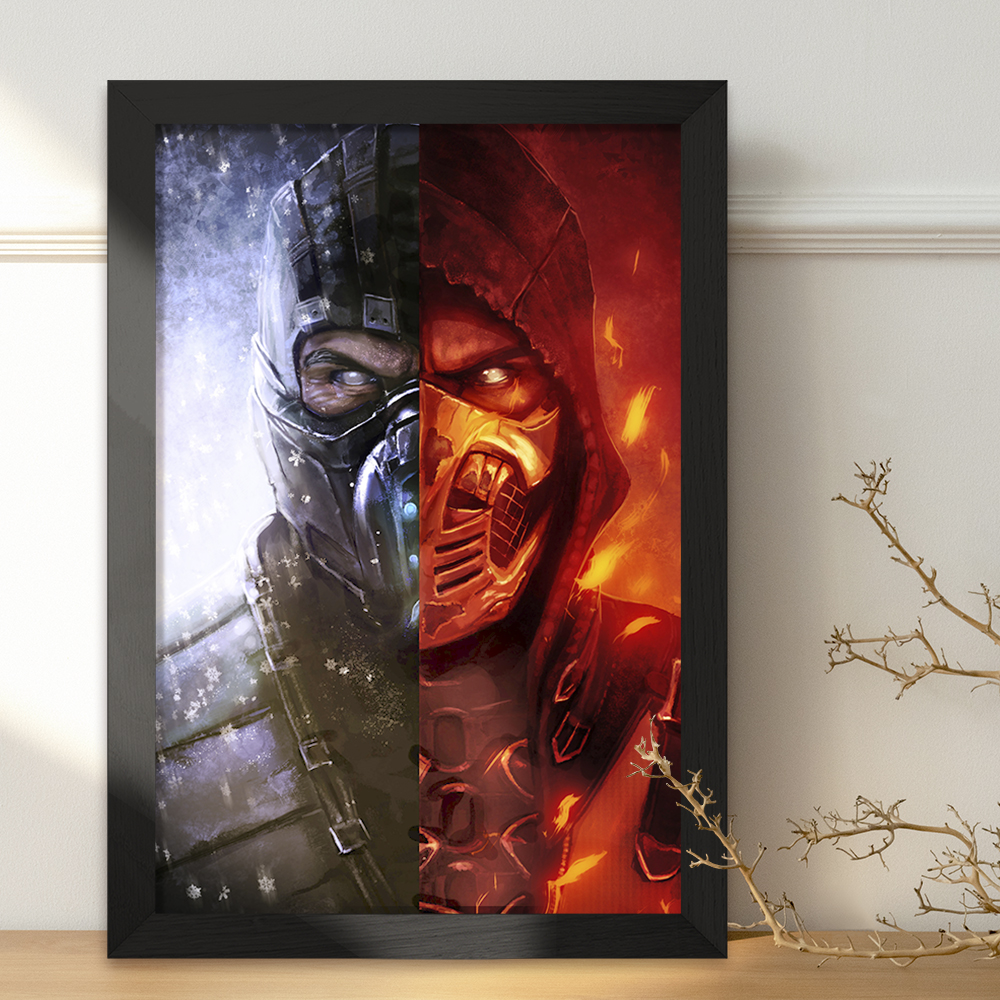 تابلو یا قاب عکس بازی مورتال کمبت Mortal Kombat خندالو در ابعاد مختلف با استفاده از بهترین برند پروفیل پی وی سی دو سانتی متری بسیار مرغوب، تولید شده اند و در مونتاژ و نصب آنها نهایت دقت در قرارگیری هر چه دقیق تر لبه ها به یکدیگر صورت گرفته است. همچنین در پشت قاب ها گیره ای برای اتصال راحت به دیوار تعبیه شده است.