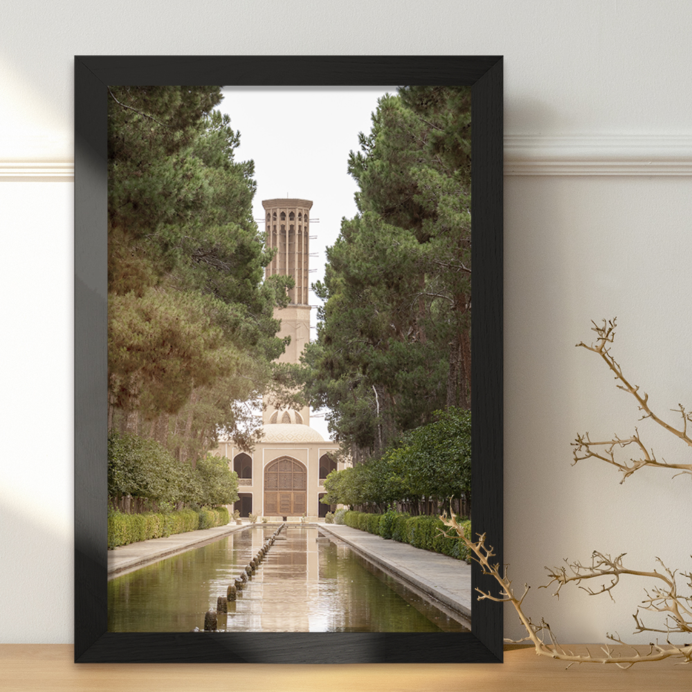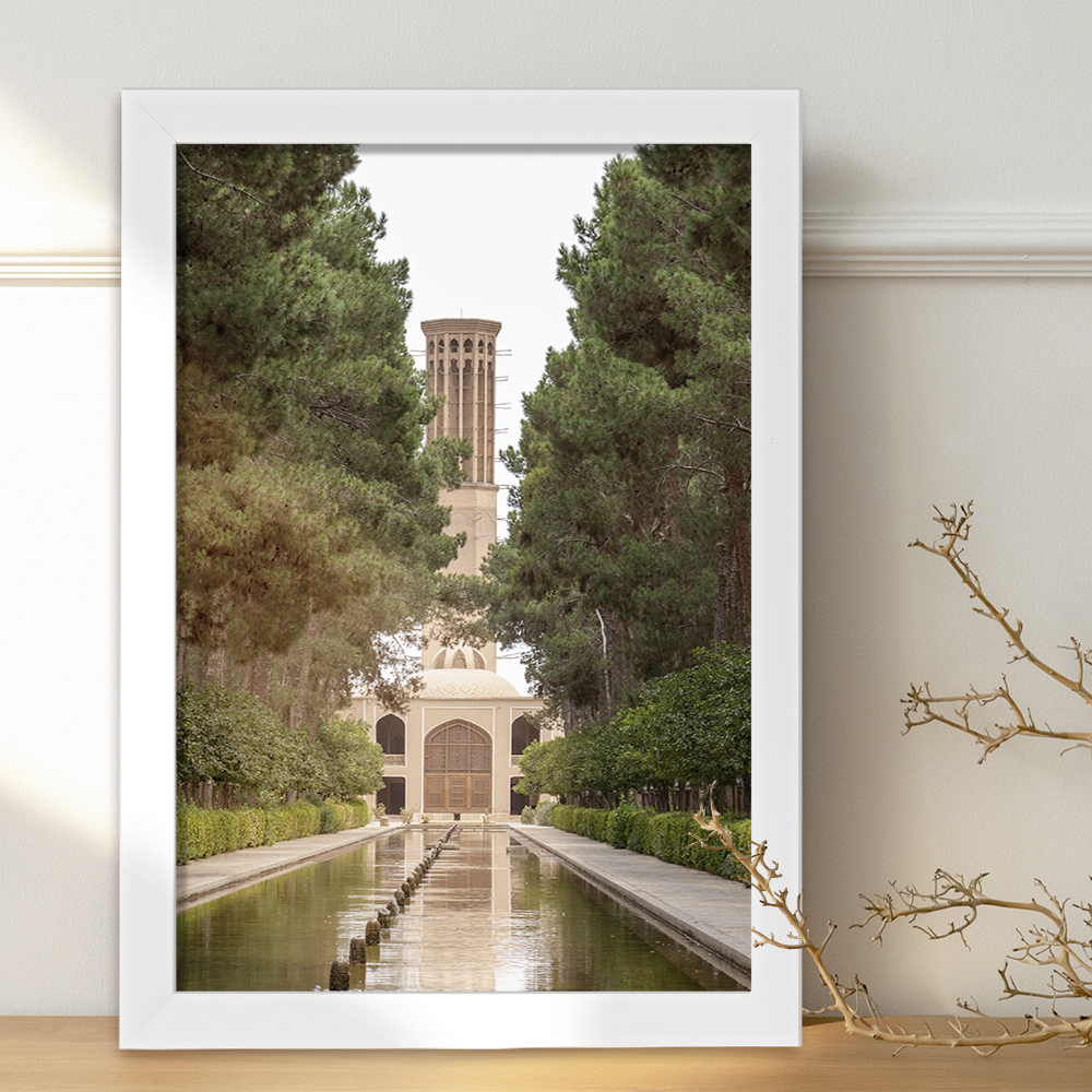 تابلو یا قاب عکس باغ دولت آباد یزد خندالو در ابعاد مختلف با استفاده از بهترین برند پروفیل پی وی سی دو سانتی متری بسیار مرغوب، تولید شده اند و در مونتاژ و نصب آنها نهایت دقت در قرارگیری هر چه دقیق تر لبه ها به یکدیگر صورت گرفته است. همچنین در پشت قاب ها گیره ای برای اتصال راحت به دیوار تعبیه شده است.