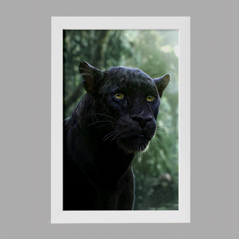 تابلو یا قاب عکس ببر سیاه خندالو در ابعاد مختلف با استفاده از بهترین برند پروفیل پی وی سی دو سانتی متری بسیار مرغوب، تولید شده اند و در مونتاژ و نصب آنها نهایت دقت در قرارگیری هر چه دقیق تر لبه ها به یکدیگر صورت گرفته است. همچنین در پشت قاب ها گیره ای برای اتصال راحت به دیوار تعبیه شده است.
