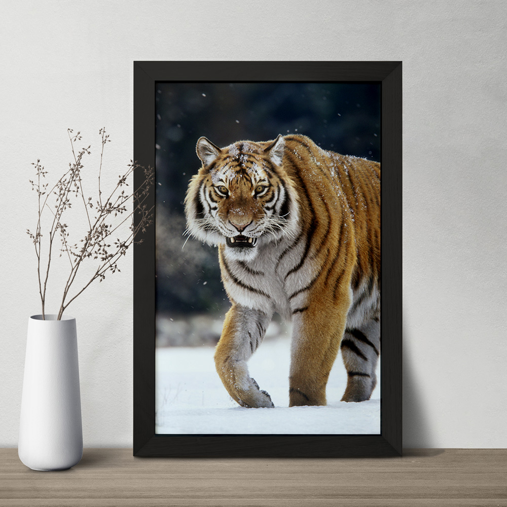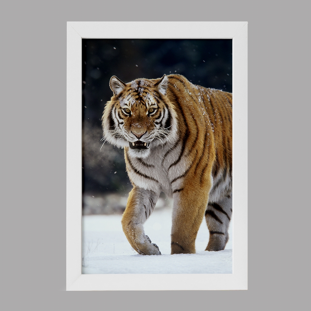 تابلو یا قاب عکس ببر خندالو در ابعاد مختلف با استفاده از بهترین برند پروفیل پی وی سی دو سانتی متری بسیار مرغوب، تولید شده اند و در مونتاژ و نصب آنها نهایت دقت در قرارگیری هر چه دقیق تر لبه ها به یکدیگر صورت گرفته است. همچنین در پشت قاب ها گیره ای برای اتصال راحت به دیوار تعبیه شده است.