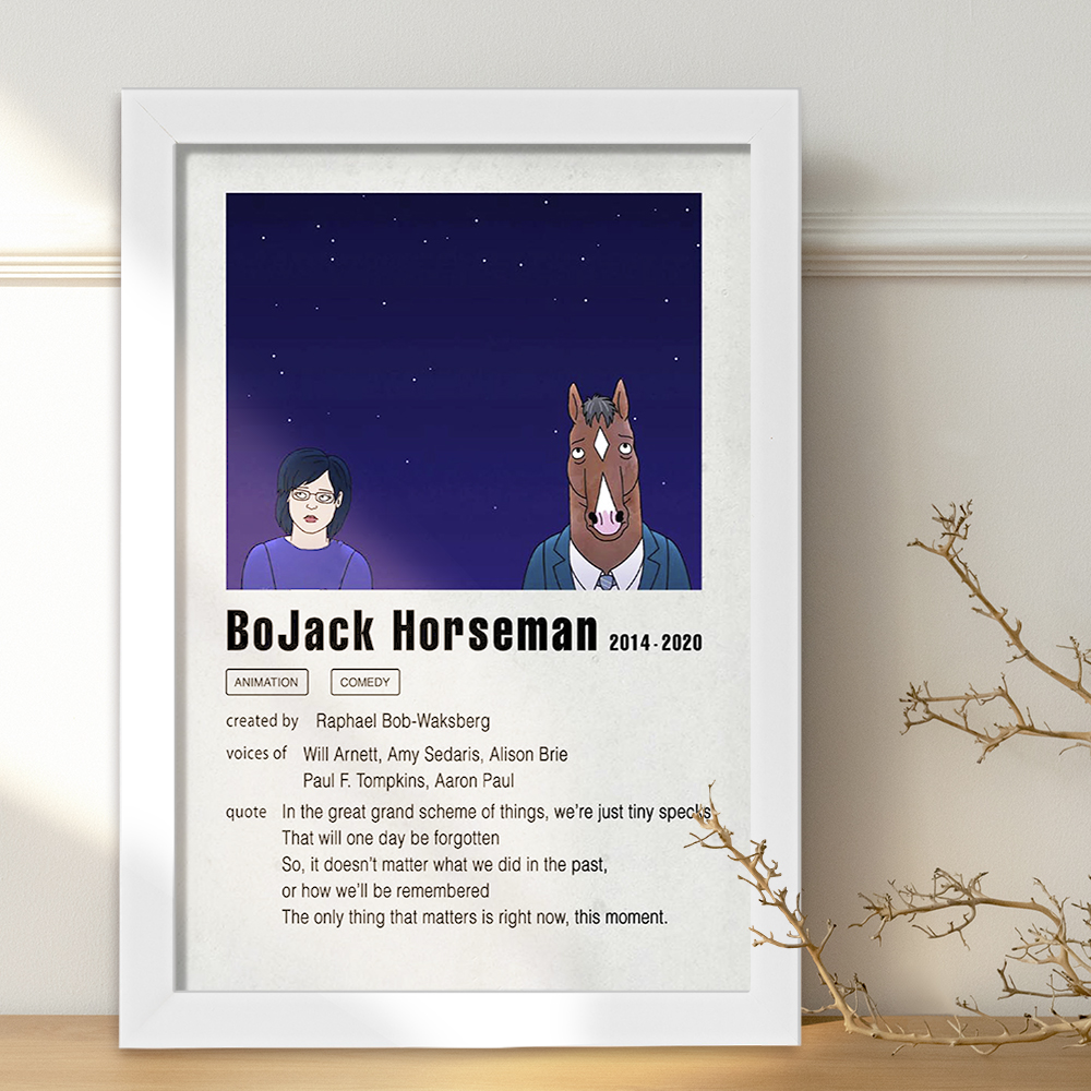 تابلو یا قاب عکس بوجک هورسمن (BoJack Horseman) خندالو در ابعاد مختلف با استفاده از بهترین برند پروفیل پی وی سی دو سانتی متری بسیار مرغوب، تولید شده اند و در مونتاژ و نصب آنها نهایت دقت در قرارگیری هر چه دقیق تر لبه ها به یکدیگر صورت گرفته است. همچنین در پشت قاب ها گیره ای برای اتصال راحت به دیوار تعبیه شده است. چاپ طرح تابلوی بوجک هورسمن (BoJack Horseman) با بالاترین کیفیت بوسیله چاپگرهای دیجیتال شش رنگ و کاغذ با کیفیت عکاسی انجام شده و بر روی آن شیشه ای با کیفیت و شفاف در سطح قاب قرار گرفته که از کاغذ عکس محافظت میکند. بسته بندی تابلوها جعبه های مقاوم و محکمی بوده که علاوه بر محافظتی که از بدنه قاب می کند، ظاهر جذابی دارد و تابلوی بوجک هورسمن (BoJack Horseman) را بدل به محصولی مناسب هدیه کرده است. تابلوهای خندالو با تنوع طرحی بسیار بالا شامل تابلو های دکوراتیو قابل استفاده در اتاق کودک، محل کار و منازل می باشد که سلیقه هر مخاطبی را پوشش می دهد، ضمن اینکه امکان تعویض عکس موجود در قاب وجود داشته و می توان عکس های خانوادگی و … را نیز در آن قرار داد.