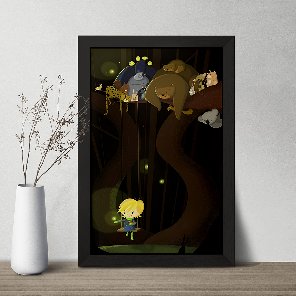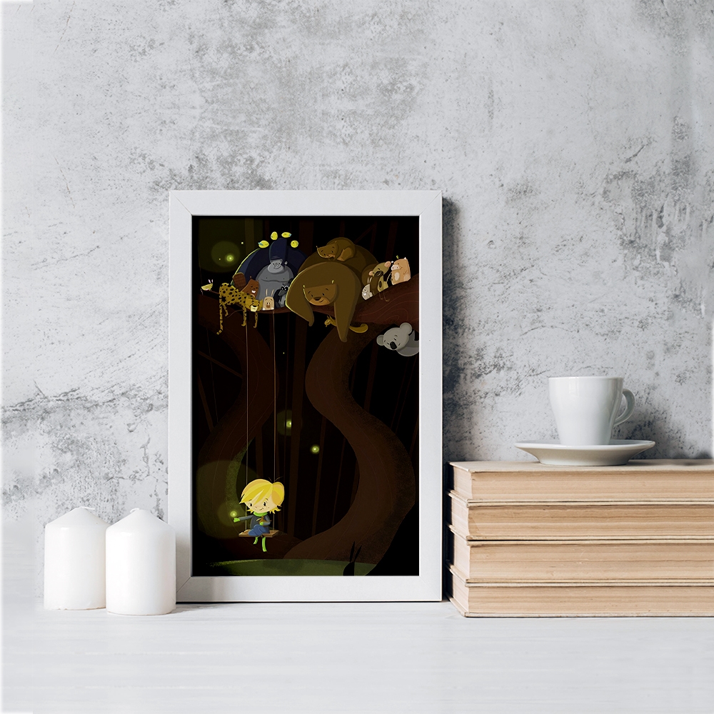 تابلو یا قاب عکس بچه و حیوانات جنگل خندالو در ابعاد مختلف با استفاده از بهترین برند پروفیل پی وی سی دو سانتی متری بسیار مرغوب، تولید شده اند و در مونتاژ و نصب آنها نهایت دقت در قرارگیری هر چه دقیق تر لبه ها به یکدیگر صورت گرفته است. همچنین در پشت قاب ها گیره ای برای اتصال راحت به دیوار تعبیه شده است. چاپ طرح تابلوی بچه و حیوانات جنگل با بالاترین کیفیت بوسیله چاپگرهای دیجیتال شش رنگ و کاغذ با کیفیت عکاسی انجام شده و بر روی آن شیشه ای با کیفیت و شفاف در سطح قاب قرار گرفته که از کاغذ عکس محافظت میکند. بسته بندی تابلوها جعبه های مقاوم و محکمی بوده که علاوه بر محافظتی که از بدنه قاب می کند، ظاهر جذابی دارد و تابلوی بچه و حیوانات جنگل را بدل به محصولی مناسب هدیه کرده است. تابلوهای خندالو با تنوع طرحی بسیار بالا شامل تابلو های دکوراتیو قابل استفاده در اتاق کودک، محل کار و منازل می باشد که سلیقه هر مخاطبی را پوشش می دهد، ضمن اینکه امکان تعویض عکس موجود در قاب وجود داشته و می توان عکس های خانوادگی و … را نیز در آن قرار داد.