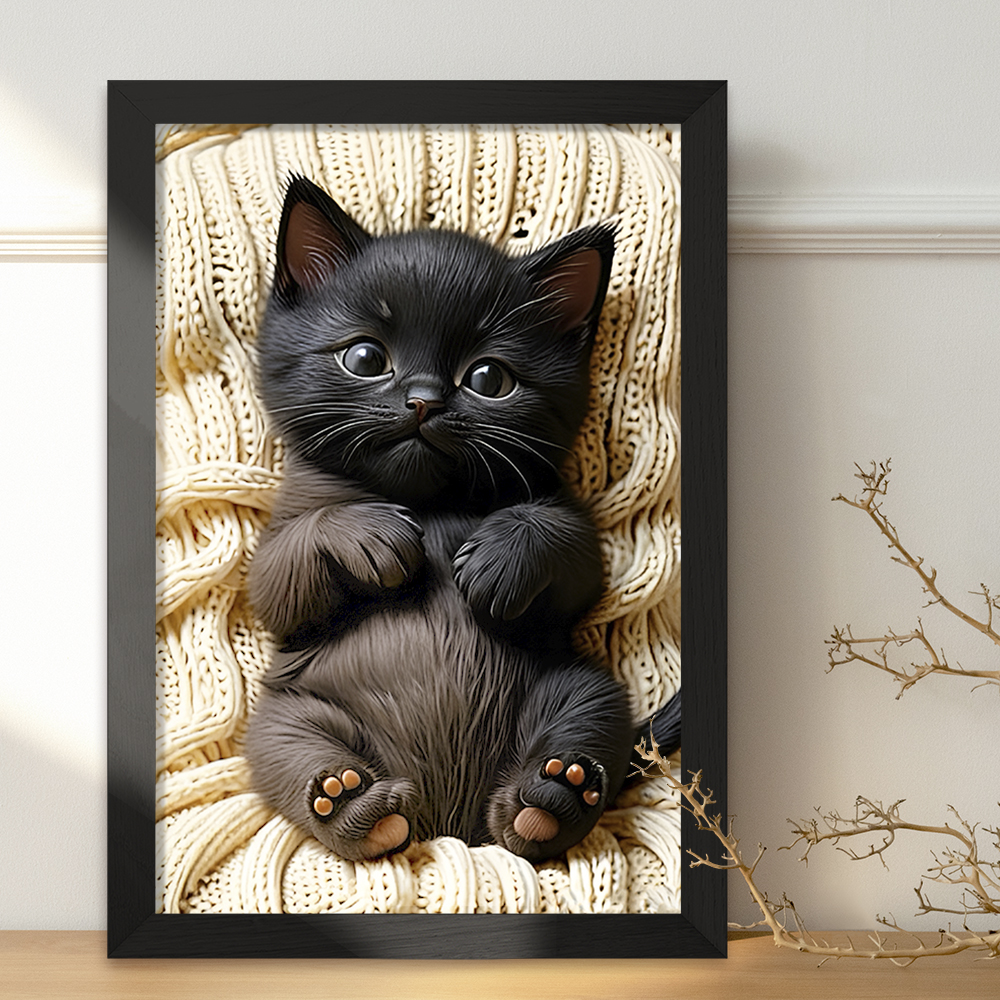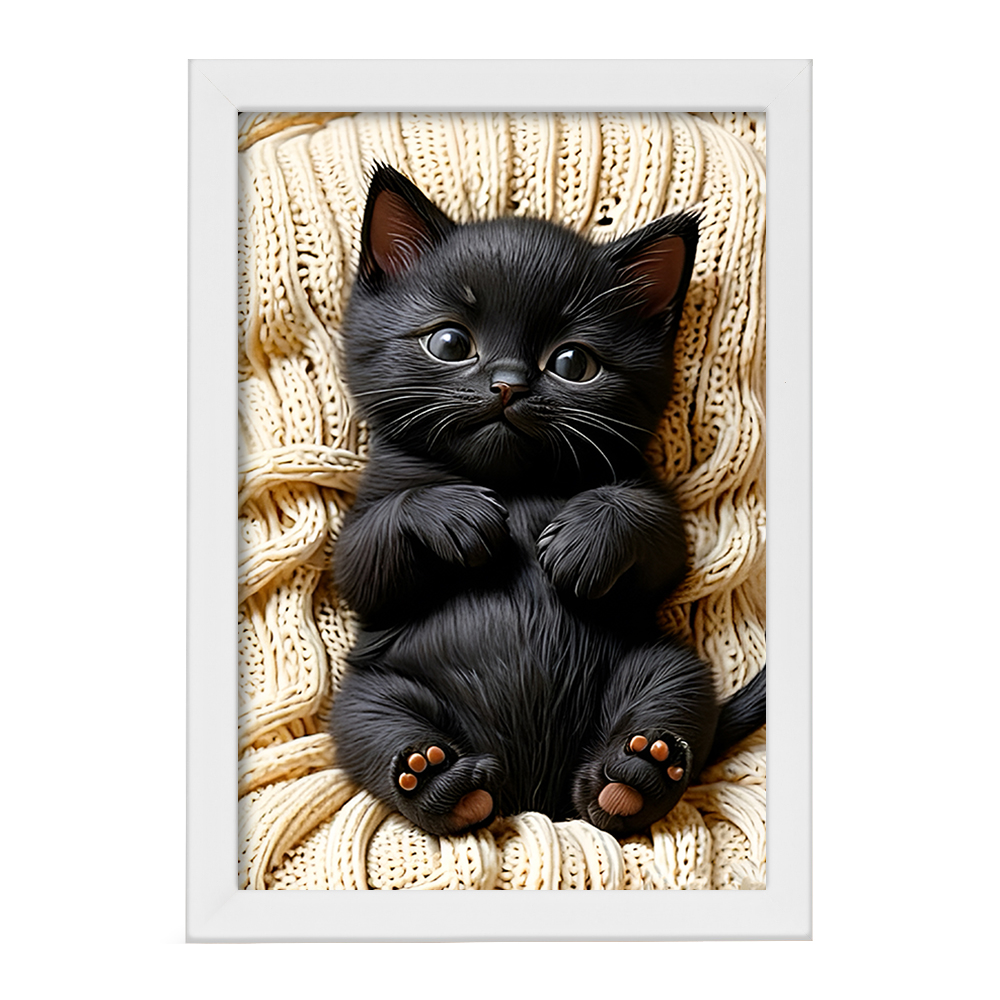 تابلو یا قاب عکس بچه گربه سیاه خندالو در ابعاد مختلف با استفاده از بهترین برند پروفیل پی وی سی دو سانتی متری بسیار مرغوب، تولید شده اند و در مونتاژ و نصب آنها نهایت دقت در قرارگیری هر چه دقیق تر لبه ها به یکدیگر صورت گرفته است. همچنین در پشت قاب ها گیره ای برای اتصال راحت به دیوار تعبیه شده است. چاپ طرح تابلوی بچه گربه سیاه با بالاترین کیفیت بوسیله چاپگرهای دیجیتال شش رنگ و کاغذ با کیفیت عکاسی انجام شده و بر روی آن شیشه ای با کیفیت و شفاف در سطح قاب قرار گرفته که از کاغذ عکس محافظت میکند. بسته بندی تابلوها جعبه های مقاوم و محکمی بوده که علاوه بر محافظتی که از بدنه قاب می کند، ظاهر جذابی دارد و تابلوی بچه گربه سیاه را بدل به محصولی مناسب هدیه کرده است. تابلوهای خندالو با تنوع طرحی بسیار بالا شامل تابلو های دکوراتیو قابل استفاده در اتاق کودک، محل کار و منازل می باشد که سلیقه هر مخاطبی را پوشش می دهد، ضمن اینکه امکان تعویض عکس موجود در قاب وجود داشته و می توان عکس های خانوادگی و … را نیز در آن قرار داد.
