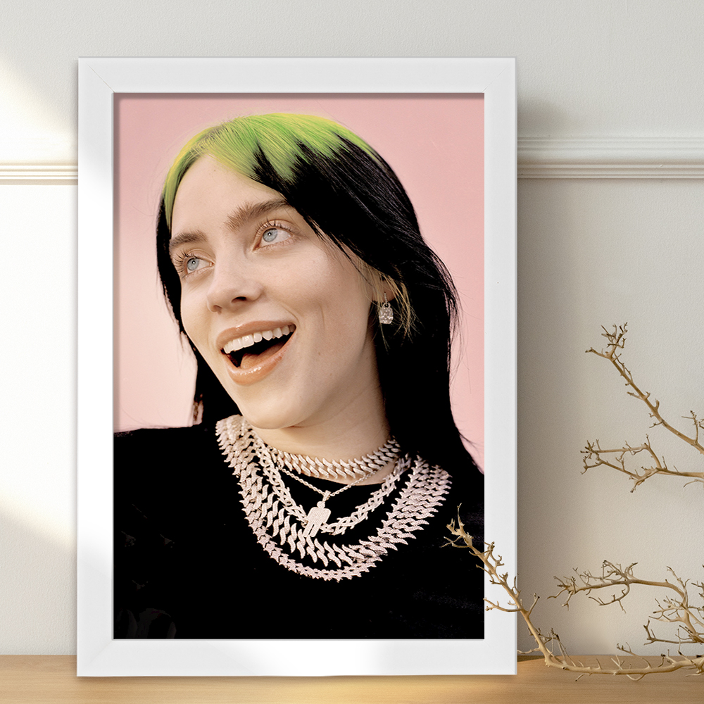 تابلو یا قاب عکس بیلی آیلیش Billie Eilish خندالو در ابعاد مختلف با استفاده از بهترین برند پروفیل پی وی سی دو سانتی متری بسیار مرغوب، تولید شده اند و در مونتاژ و نصب آنها نهایت دقت در قرارگیری هر چه دقیق تر لبه ها به یکدیگر صورت گرفته است. همچنین در پشت قاب ها گیره ای برای اتصال راحت به دیوار تعبیه شده است.