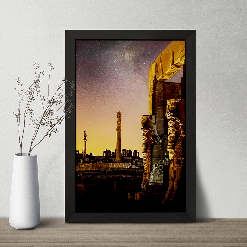 تابلو یا قاب عکس تخت جمشید خندالو در ابعاد مختلف با استفاده از بهترین برند پروفیل پی وی سی دو سانتی متری بسیار مرغوب، تولید شده اند و در مونتاژ و نصب آنها نهایت دقت در قرارگیری هر چه دقیق تر لبه ها به یکدیگر صورت گرفته است. همچنین در پشت قاب ها گیره ای برای اتصال راحت به دیوار تعبیه شده است.