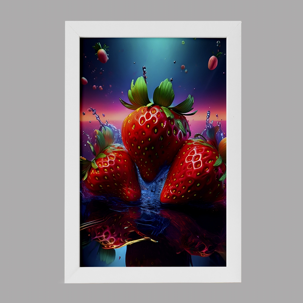 تابلو یا قاب عکس توت فرنگی خندالو در ابعاد مختلف با استفاده از بهترین برند پروفیل پی وی سی دو سانتی متری بسیار مرغوب، تولید شده اند و در مونتاژ و نصب آنها نهایت دقت در قرارگیری هر چه دقیق تر لبه ها به یکدیگر صورت گرفته است. همچنین در پشت قاب ها گیره ای برای اتصال راحت به دیوار تعبیه شده است.