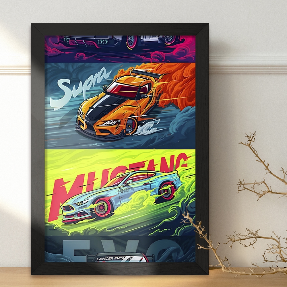 تابلو یا قاب عکس تویوتا (Toyota Supra) خندالو در ابعاد مختلف با استفاده از بهترین برند پروفیل پی وی سی دو سانتی متری بسیار مرغوب، تولید شده اند و در مونتاژ و نصب آنها نهایت دقت در قرارگیری هر چه دقیق تر لبه ها به یکدیگر صورت گرفته است. همچنین در پشت قاب ها گیره ای برای اتصال راحت به دیوار تعبیه شده است.
