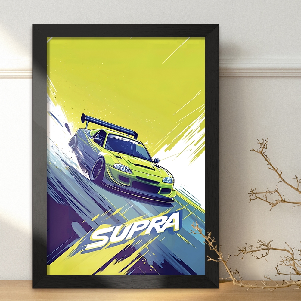 تابلو یا قاب عکس تویوتا (Toyota Supra) خندالو در ابعاد مختلف با استفاده از بهترین برند پروفیل پی وی سی دو سانتی متری بسیار مرغوب، تولید شده اند و در مونتاژ و نصب آنها نهایت دقت در قرارگیری هر چه دقیق تر لبه ها به یکدیگر صورت گرفته است. همچنین در پشت قاب ها گیره ای برای اتصال راحت به دیوار تعبیه شده است.
