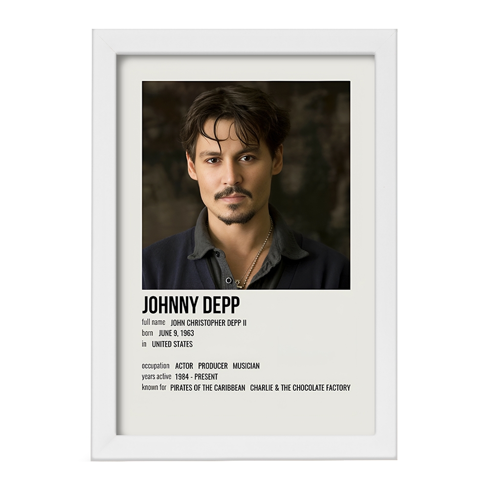 تابلو یا قاب عکس جانی دپ (Johnny Depp) خندالو در ابعاد مختلف با استفاده از بهترین برند پروفیل پی وی سی دو سانتی متری بسیار مرغوب، تولید شده اند و در مونتاژ و نصب آنها نهایت دقت در قرارگیری هر چه دقیق تر لبه ها به یکدیگر صورت گرفته است. همچنین در پشت قاب ها گیره ای برای اتصال راحت به دیوار تعبیه شده است. چاپ طرح تابلوی جانی دپ (Johnny Depp) با بالاترین کیفیت بوسیله چاپگرهای دیجیتال شش رنگ و کاغذ با کیفیت عکاسی انجام شده و بر روی آن شیشه ای با کیفیت و شفاف در سطح قاب قرار گرفته که از کاغذ عکس محافظت میکند. بسته بندی تابلوها جعبه های مقاوم و محکمی بوده که علاوه بر محافظتی که از بدنه قاب می کند، ظاهر جذابی دارد و تابلوی جانی دپ (Johnny Depp) را بدل به محصولی مناسب هدیه کرده است. تابلوهای خندالو با تنوع طرحی بسیار بالا شامل تابلو های دکوراتیو قابل استفاده در اتاق کودک، محل کار و منازل می باشد که سلیقه هر مخاطبی را پوشش می دهد، ضمن اینکه امکان تعویض عکس موجود در قاب وجود داشته و می توان عکس های خانوادگی و … را نیز در آن قرار داد.