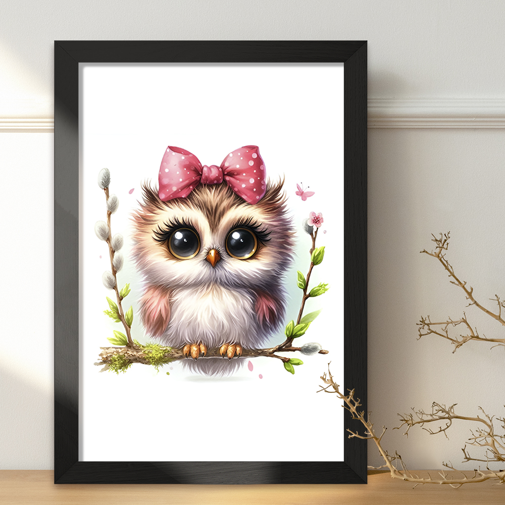 تابلو یا قاب عکس جغد کیوت خندالو در ابعاد مختلف با استفاده از بهترین برند پروفیل پی وی سی دو سانتی متری بسیار مرغوب، تولید شده اند و در مونتاژ و نصب آنها نهایت دقت در قرارگیری هر چه دقیق تر لبه ها به یکدیگر صورت گرفته است. همچنین در پشت قاب ها گیره ای برای اتصال راحت به دیوار تعبیه شده است.