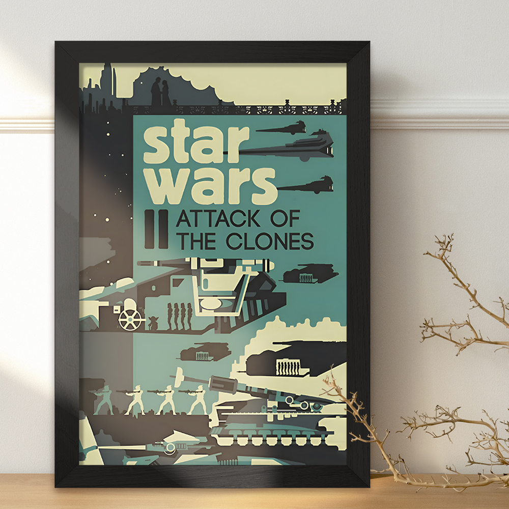 تابلو یا قاب عکس جنگ ستارگان (Star Wars) خندالو در ابعاد مختلف با استفاده از بهترین برند پروفیل پی وی سی دو سانتی متری بسیار مرغوب، تولید شده اند و در مونتاژ و نصب آنها نهایت دقت در قرارگیری هر چه دقیق تر لبه ها به یکدیگر صورت گرفته است. همچنین در پشت قاب ها گیره ای برای اتصال راحت به دیوار تعبیه شده است.