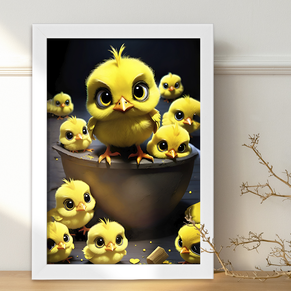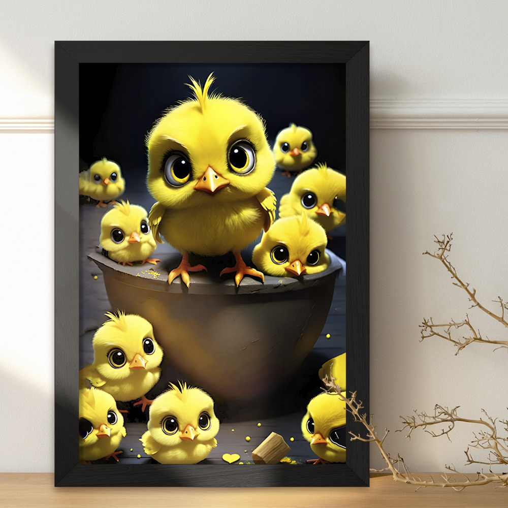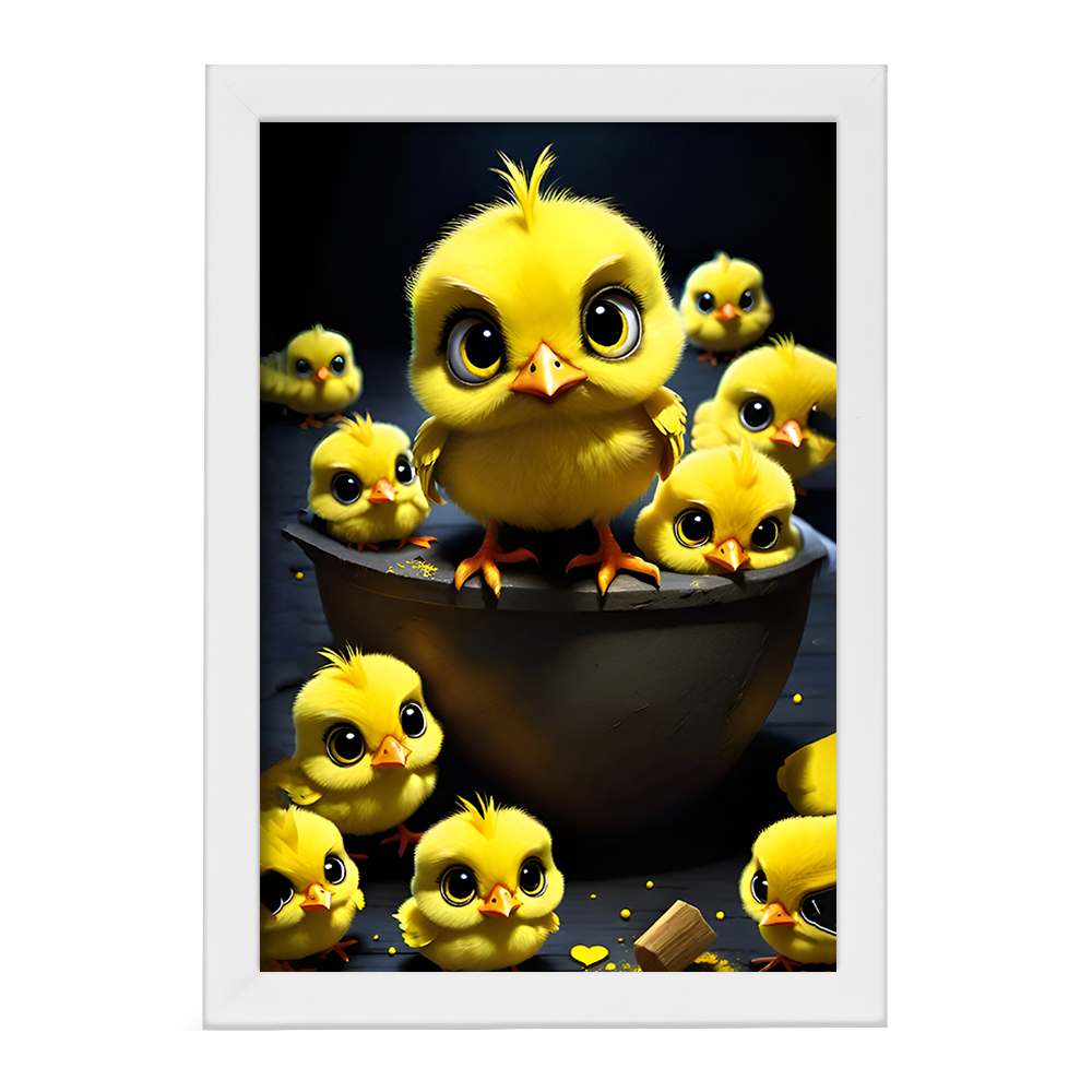 تابلو یا قاب عکس جوجه های گنگ خندالو در ابعاد مختلف با استفاده از بهترین برند پروفیل پی وی سی دو سانتی متری بسیار مرغوب، تولید شده اند و در مونتاژ و نصب آنها نهایت دقت در قرارگیری هر چه دقیق تر لبه ها به یکدیگر صورت گرفته است. همچنین در پشت قاب ها گیره ای برای اتصال راحت به دیوار تعبیه شده است. چاپ طرح تابلوی جوجه های گنگ با بالاترین کیفیت بوسیله چاپگرهای دیجیتال شش رنگ و کاغذ با کیفیت عکاسی انجام شده و بر روی آن شیشه ای با کیفیت و شفاف در سطح قاب قرار گرفته که از کاغذ عکس محافظت میکند. بسته بندی تابلوها جعبه های مقاوم و محکمی بوده که علاوه بر محافظتی که از بدنه قاب می کند، ظاهر جذابی دارد و تابلوی جوجه های گنگ را بدل به محصولی مناسب هدیه کرده است. تابلوهای خندالو با تنوع طرحی بسیار بالا شامل تابلو های دکوراتیو قابل استفاده در اتاق کودک، محل کار و منازل می باشد که سلیقه هر مخاطبی را پوشش می دهد، ضمن اینکه امکان تعویض عکس موجود در قاب وجود داشته و می توان عکس های خانوادگی و … را نیز در آن قرار داد.