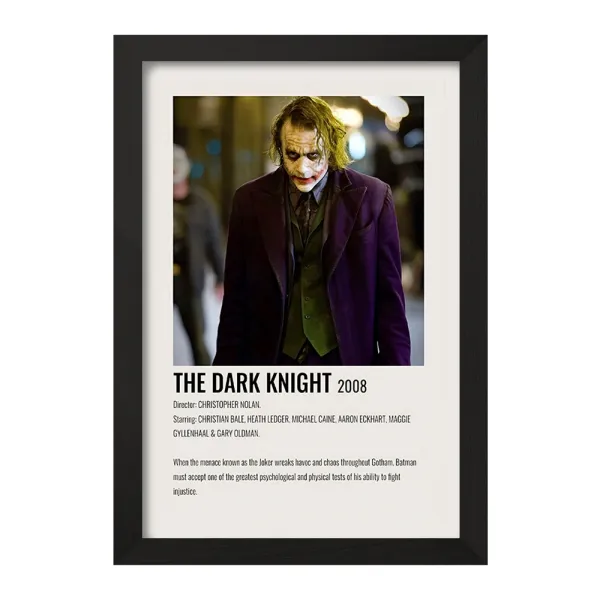 تابلو یا قاب عکس جوکر (Joker) خندالو در ابعاد مختلف با استفاده از بهترین برند پروفیل پی وی سی دو سانتی متری بسیار مرغوب، تولید شده اند و در مونتاژ و نصب آنها نهایت دقت در قرارگیری هر چه دقیق تر لبه ها به یکدیگر صورت گرفته است. همچنین در پشت قاب ها گیره ای برای اتصال راحت به دیوار تعبیه شده است.