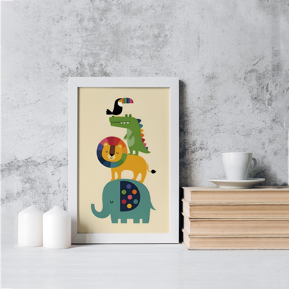 تابلو یا قاب عکس حیوانات کیوت خندالو در ابعاد مختلف با استفاده از بهترین برند پروفیل پی وی سی دو سانتی متری بسیار مرغوب، تولید شده اند و در مونتاژ و نصب آنها نهایت دقت در قرارگیری هر چه دقیق تر لبه ها به یکدیگر صورت گرفته است. همچنین در پشت قاب ها گیره ای برای اتصال راحت به دیوار تعبیه شده است.