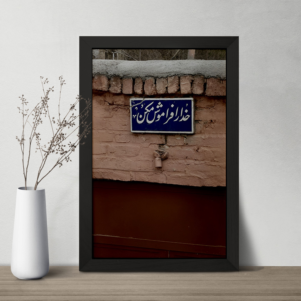 تابلو یا قاب عکس خدا را فراموش نکن خندالو در ابعاد مختلف با استفاده از بهترین برند پروفیل پی وی سی دو سانتی متری بسیار مرغوب، تولید شده اند و در مونتاژ و نصب آنها نهایت دقت در قرارگیری هر چه دقیق تر لبه ها به یکدیگر صورت گرفته است. همچنین در پشت قاب ها گیره ای برای اتصال راحت به دیوار تعبیه شده است. چاپ طرح تابلوی خدا را فراموش نکن با بالاترین کیفیت بوسیله چاپگرهای دیجیتال شش رنگ و کاغذ با کیفیت عکاسی انجام شده و بر روی آن شیشه ای با کیفیت و شفاف در سطح قاب قرار گرفته که از کاغذ عکس محافظت میکند. بسته بندی تابلوها جعبه های مقاوم و محکمی بوده که علاوه بر محافظتی که از بدنه قاب می کند، ظاهر جذابی دارد و تابلوی خدا را فراموش نکن را بدل به محصولی مناسب هدیه کرده است. تابلوهای خندالو با تنوع طرحی بسیار بالا شامل تابلو های دکوراتیو قابل استفاده در اتاق کودک، محل کار و منازل می باشد که سلیقه هر مخاطبی را پوشش می دهد، ضمن اینکه امکان تعویض عکس موجود در قاب وجود داشته و می توان عکس های خانوادگی و … را نیز در آن قرار داد.