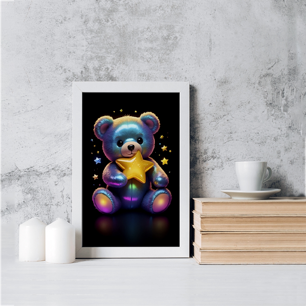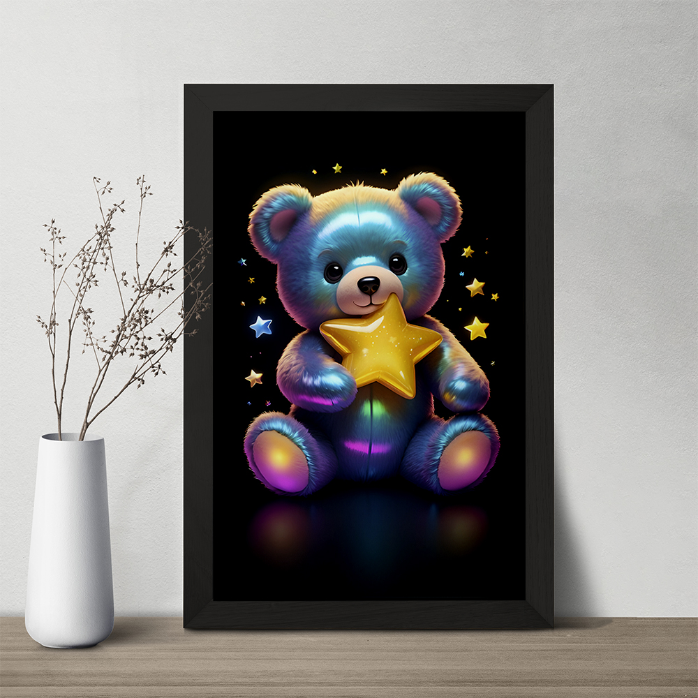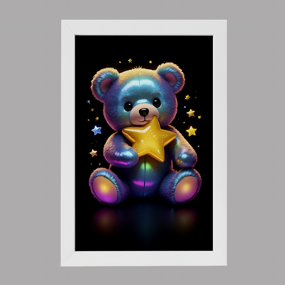 تابلو یا قاب عکس خرس و ستاره ی کیوت خندالو در ابعاد مختلف با استفاده از بهترین برند پروفیل پی وی سی دو سانتی متری بسیار مرغوب، تولید شده اند و در مونتاژ و نصب آنها نهایت دقت در قرارگیری هر چه دقیق تر لبه ها به یکدیگر صورت گرفته است. همچنین در پشت قاب ها گیره ای برای اتصال راحت به دیوار تعبیه شده است. چاپ طرح تابلوی خرس و ستاره ی کیوت با بالاترین کیفیت بوسیله چاپگرهای دیجیتال شش رنگ و کاغذ با کیفیت عکاسی انجام شده و بر روی آن شیشه ای با کیفیت و شفاف در سطح قاب قرار گرفته که از کاغذ عکس محافظت میکند. بسته بندی تابلوها جعبه های مقاوم و محکمی بوده که علاوه بر محافظتی که از بدنه قاب می کند، ظاهر جذابی دارد و تابلوی خرس و ستاره ی کیوت را بدل به محصولی مناسب هدیه کرده است. تابلوهای خندالو با تنوع طرحی بسیار بالا شامل تابلو های دکوراتیو قابل استفاده در اتاق کودک، محل کار و منازل می باشد که سلیقه هر مخاطبی را پوشش می دهد، ضمن اینکه امکان تعویض عکس موجود در قاب وجود داشته و می توان عکس های خانوادگی و … را نیز در آن قرار داد.