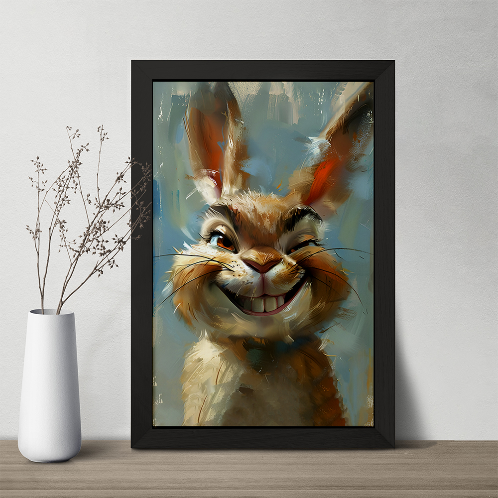 تابلو یا قاب عکس خرگوش خندالو در ابعاد مختلف با استفاده از بهترین برند پروفیل پی وی سی دو سانتی متری بسیار مرغوب، تولید شده اند و در مونتاژ و نصب آنها نهایت دقت در قرارگیری هر چه دقیق تر لبه ها به یکدیگر صورت گرفته است. همچنین در پشت قاب ها گیره ای برای اتصال راحت به دیوار تعبیه شده است.