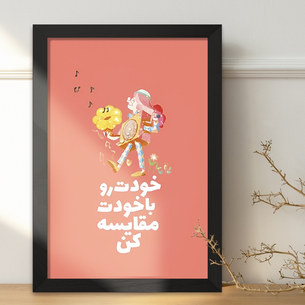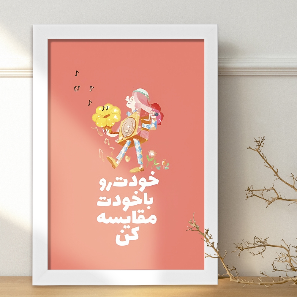 تابلو یا قاب عکس خودت رو با خودت مقایسه کن خندالو در ابعاد مختلف با استفاده از بهترین برند پروفیل پی وی سی دو سانتی متری بسیار مرغوب، تولید شده اند و در مونتاژ و نصب آنها نهایت دقت در قرارگیری هر چه دقیق تر لبه ها به یکدیگر صورت گرفته است. همچنین در پشت قاب ها گیره ای برای اتصال راحت به دیوار تعبیه شده است. چاپ طرح تابلوی خودت رو با خودت مقایسه کن با بالاترین کیفیت بوسیله چاپگرهای دیجیتال شش رنگ و کاغذ با کیفیت عکاسی انجام شده و بر روی آن شیشه ای با کیفیت و شفاف در سطح قاب قرار گرفته که از کاغذ عکس محافظت میکند. بسته بندی تابلوها جعبه های مقاوم و محکمی بوده که علاوه بر محافظتی که از بدنه قاب می کند، ظاهر جذابی دارد و تابلوی خودت رو با خودت مقایسه کن را بدل به محصولی مناسب هدیه کرده است. تابلوهای خندالو با تنوع طرحی بسیار بالا شامل تابلو های دکوراتیو قابل استفاده در اتاق کودک، محل کار و منازل می باشد که سلیقه هر مخاطبی را پوشش می دهد، ضمن اینکه امکان تعویض عکس موجود در قاب وجود داشته و می توان عکس های خانوادگی و … را نیز در آن قرار داد.