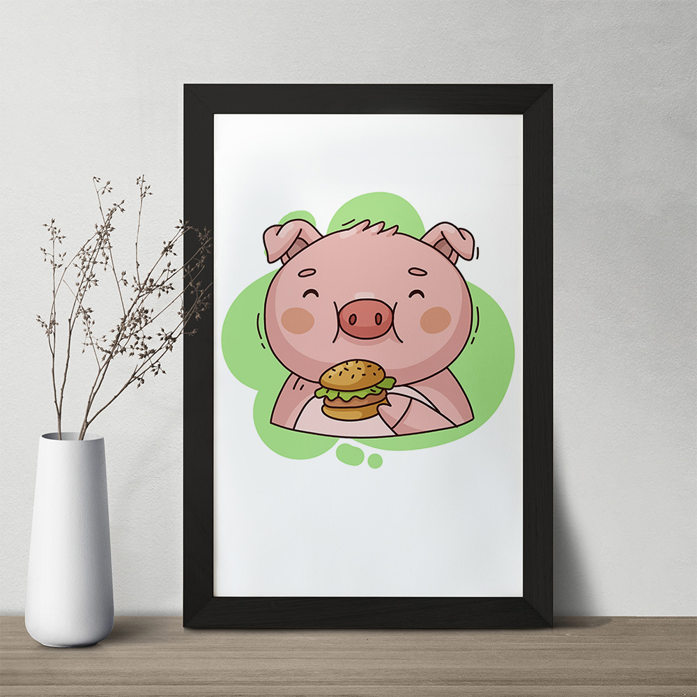 تابلو یا قاب عکس خوک حیوانات بامزه خندالو در ابعاد مختلف با استفاده از بهترین برند پروفیل پی وی سی دو سانتی متری بسیار مرغوب، تولید شده اند و در مونتاژ و نصب آنها نهایت دقت در قرارگیری هر چه دقیق تر لبه ها به یکدیگر صورت گرفته است. همچنین در پشت قاب ها گیره ای برای اتصال راحت به دیوار تعبیه شده است. چاپ طرح تابلوی خوک حیوانات بامزه با بالاترین کیفیت بوسیله چاپگرهای دیجیتال شش رنگ و کاغذ با کیفیت عکاسی انجام شده و بر روی آن شیشه ای با کیفیت و شفاف در سطح قاب قرار گرفته که از کاغذ عکس محافظت میکند. بسته بندی تابلوها جعبه های مقاوم و محکمی بوده که علاوه بر محافظتی که از بدنه قاب می کند، ظاهر جذابی دارد و تابلوی خوک حیوانات بامزه را بدل به محصولی مناسب هدیه کرده است. تابلوهای خندالو با تنوع طرحی بسیار بالا شامل تابلو های دکوراتیو قابل استفاده در اتاق کودک، محل کار و منازل می باشد که سلیقه هر مخاطبی را پوشش می دهد، ضمن اینکه امکان تعویض عکس موجود در قاب وجود داشته و می توان عکس های خانوادگی و … را نیز در آن قرار داد.