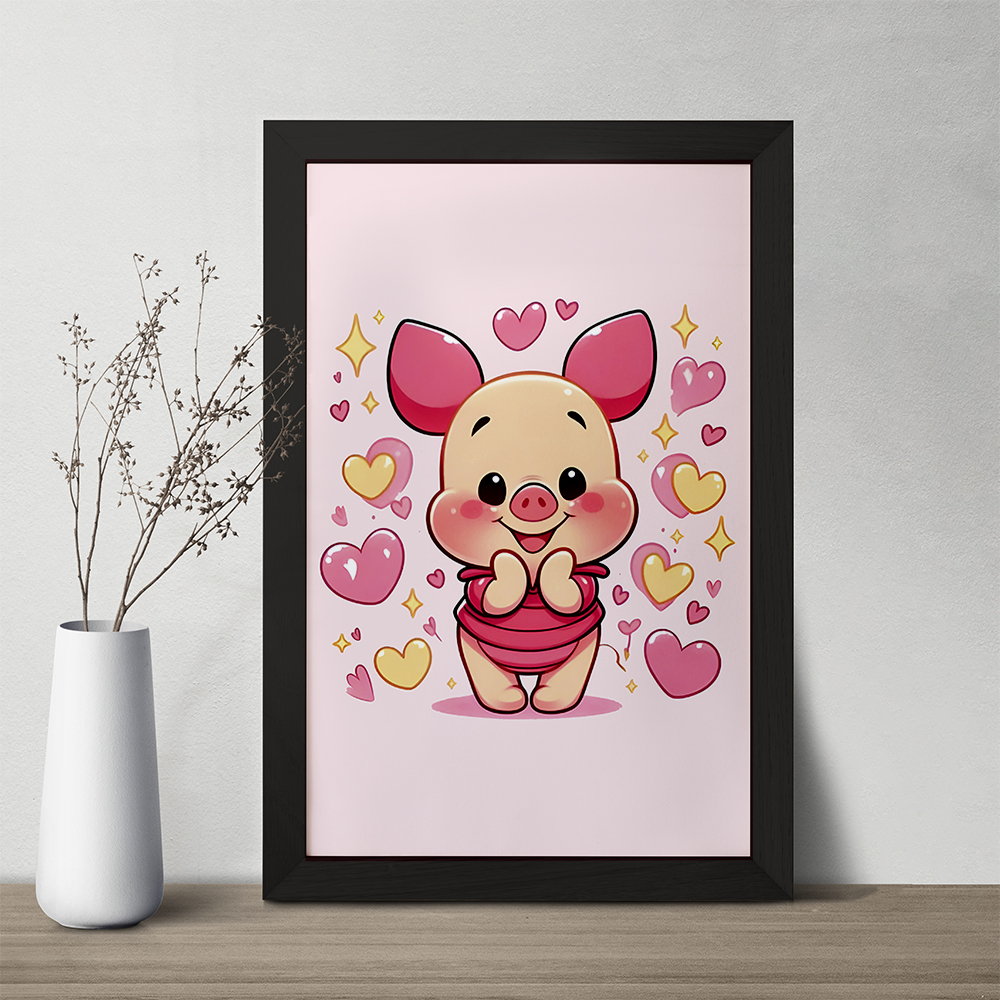 تابلو یا قاب عکس خوک خرس پو خندالو در ابعاد مختلف با استفاده از بهترین برند پروفیل پی وی سی دو سانتی متری بسیار مرغوب، تولید شده اند و در مونتاژ و نصب آنها نهایت دقت در قرارگیری هر چه دقیق تر لبه ها به یکدیگر صورت گرفته است. همچنین در پشت قاب ها گیره ای برای اتصال راحت به دیوار تعبیه شده است.
