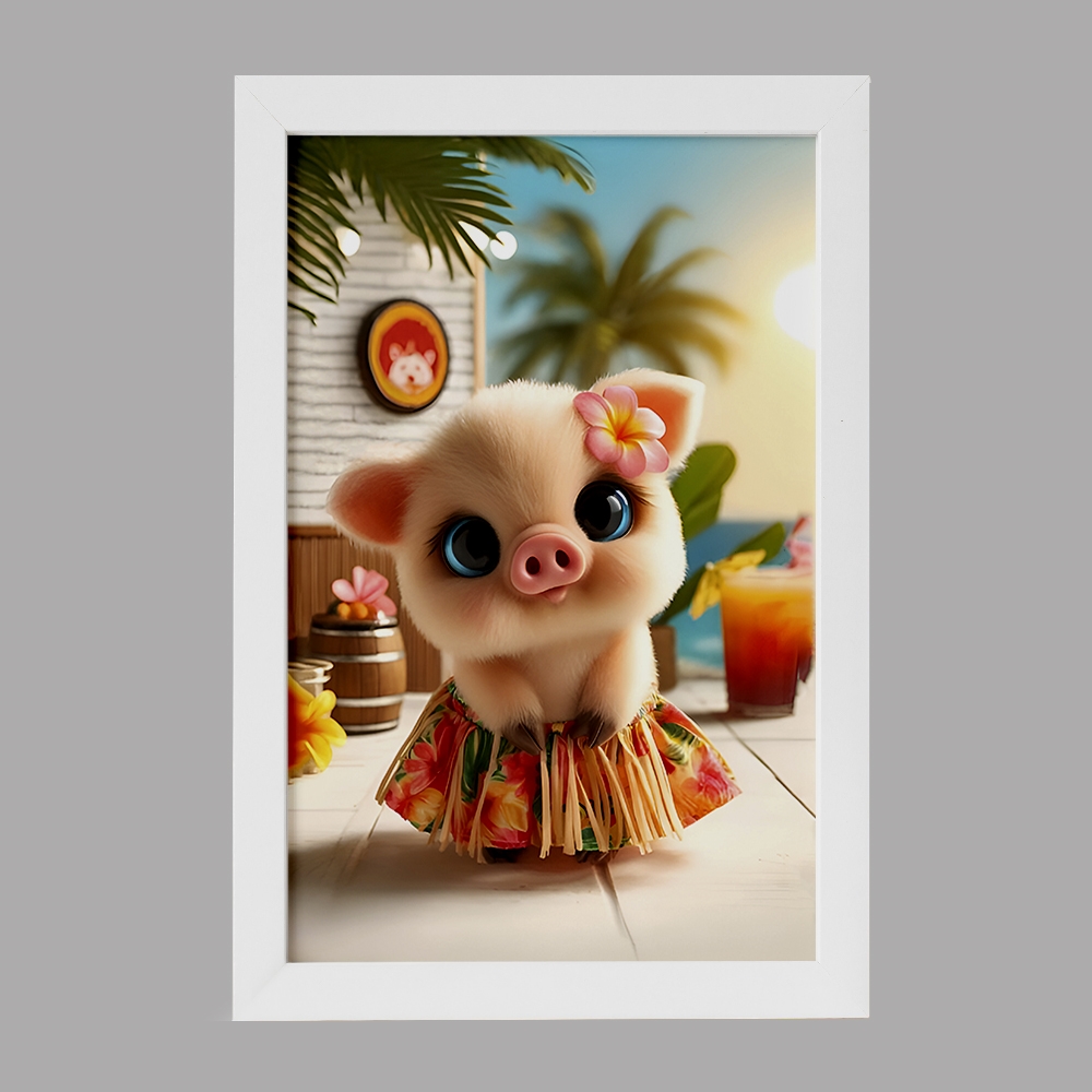 تابلو یا قاب عکس خوک کیوت خندالو در ابعاد مختلف با استفاده از بهترین برند پروفیل پی وی سی دو سانتی متری بسیار مرغوب، تولید شده اند و در مونتاژ و نصب آنها نهایت دقت در قرارگیری هر چه دقیق تر لبه ها به یکدیگر صورت گرفته است. همچنین در پشت قاب ها گیره ای برای اتصال راحت به دیوار تعبیه شده است.