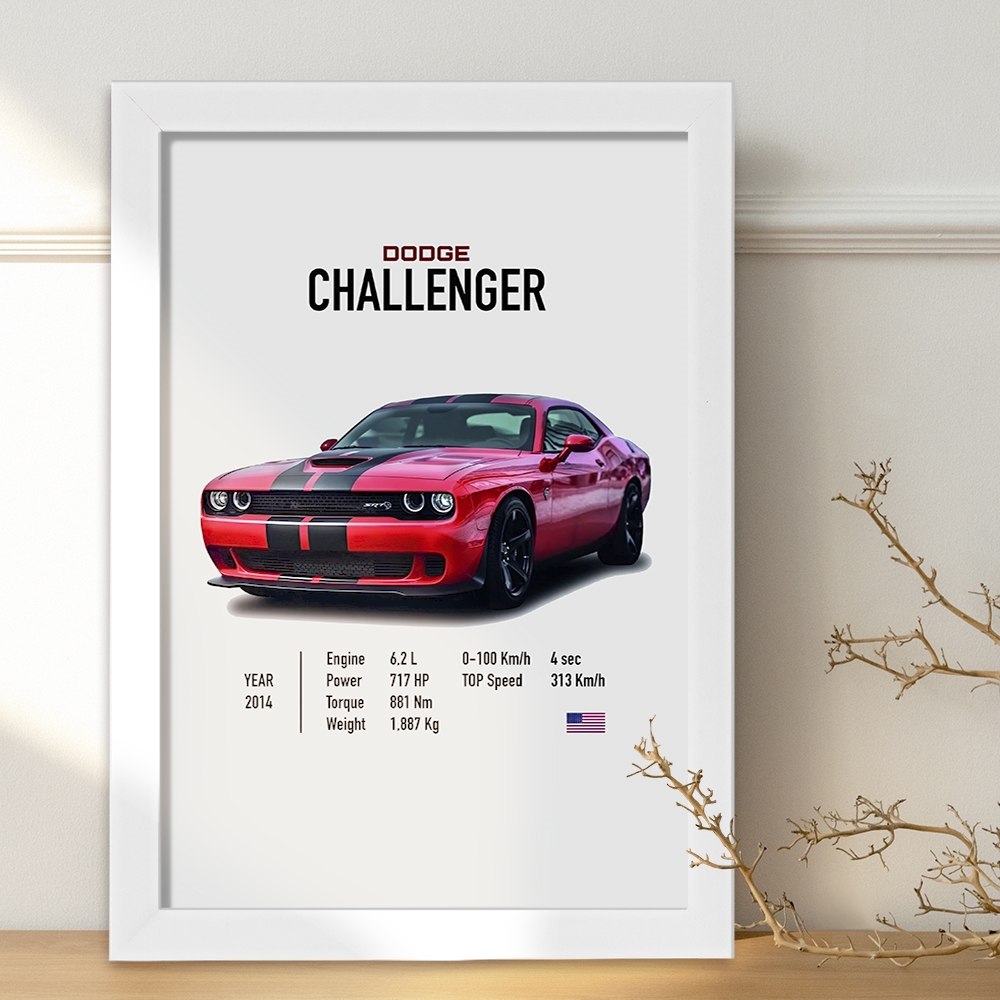 تابلو یا قاب عکس داج (Dodge Challenger) خندالو در ابعاد مختلف با استفاده از بهترین برند پروفیل پی وی سی دو سانتی متری بسیار مرغوب، تولید شده اند و در مونتاژ و نصب آنها نهایت دقت در قرارگیری هر چه دقیق تر لبه ها به یکدیگر صورت گرفته است. همچنین در پشت قاب ها گیره ای برای اتصال راحت به دیوار تعبیه شده است.