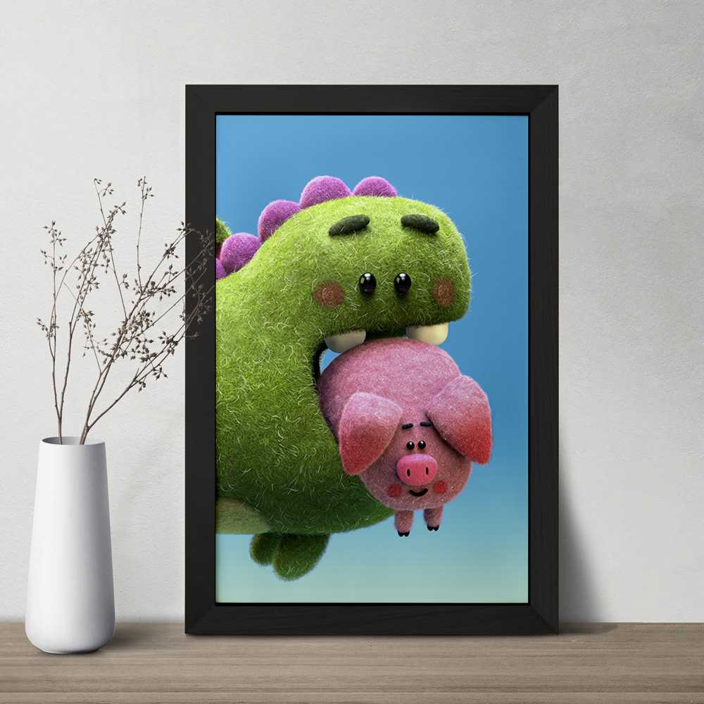 تابلو یا قاب عکس دایناسور و خوک کیوت خندالو در ابعاد مختلف با استفاده از بهترین برند پروفیل پی وی سی دو سانتی متری بسیار مرغوب، تولید شده اند و در مونتاژ و نصب آنها نهایت دقت در قرارگیری هر چه دقیق تر لبه ها به یکدیگر صورت گرفته است. همچنین در پشت قاب ها گیره ای برای اتصال راحت به دیوار تعبیه شده است. چاپ طرح تابلوی دایناسور و خوک کیوت با بالاترین کیفیت بوسیله چاپگرهای دیجیتال شش رنگ و کاغذ با کیفیت عکاسی انجام شده و بر روی آن شیشه ای با کیفیت و شفاف در سطح قاب قرار گرفته که از کاغذ عکس محافظت میکند. بسته بندی تابلوها جعبه های مقاوم و محکمی بوده که علاوه بر محافظتی که از بدنه قاب می کند، ظاهر جذابی دارد و تابلوی دایناسور و خوک کیوت را بدل به محصولی مناسب هدیه کرده است. تابلوهای خندالو با تنوع طرحی بسیار بالا شامل تابلو های دکوراتیو قابل استفاده در اتاق کودک، محل کار و منازل می باشد که سلیقه هر مخاطبی را پوشش می دهد، ضمن اینکه امکان تعویض عکس موجود در قاب وجود داشته و می توان عکس های خانوادگی و … را نیز در آن قرار داد.