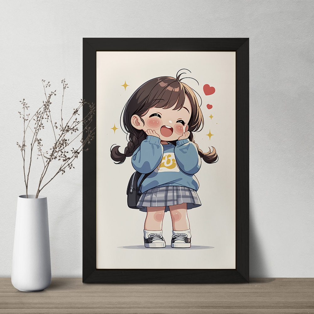 تابلو یا قاب عکس دخترانه کیوت خندالو در ابعاد مختلف با استفاده از بهترین برند پروفیل پی وی سی دو سانتی متری بسیار مرغوب، تولید شده اند و در مونتاژ و نصب آنها نهایت دقت در قرارگیری هر چه دقیق تر لبه ها به یکدیگر صورت گرفته است. همچنین در پشت قاب ها گیره ای برای اتصال راحت به دیوار تعبیه شده است.