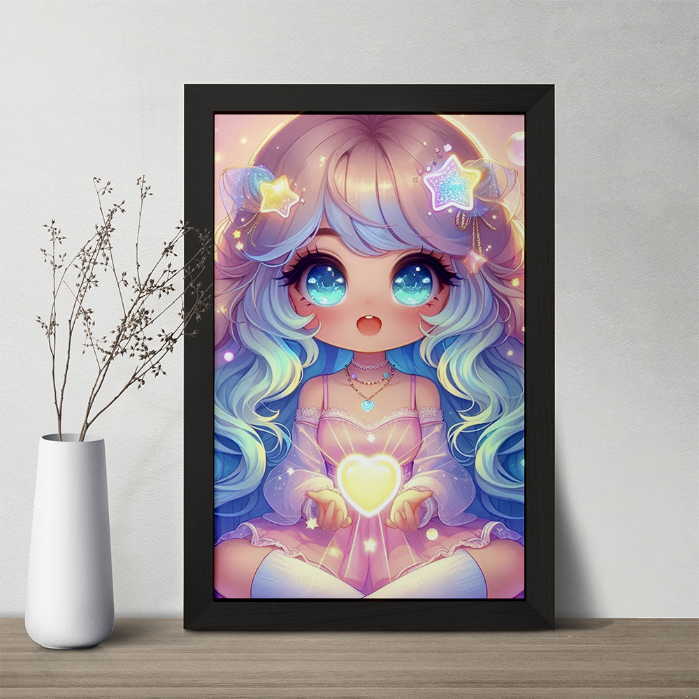 تابلو یا قاب عکس دخترانه کیوت خندالو در ابعاد مختلف با استفاده از بهترین برند پروفیل پی وی سی دو سانتی متری بسیار مرغوب، تولید شده اند و در مونتاژ و نصب آنها نهایت دقت در قرارگیری هر چه دقیق تر لبه ها به یکدیگر صورت گرفته است. همچنین در پشت قاب ها گیره ای برای اتصال راحت به دیوار تعبیه شده است.