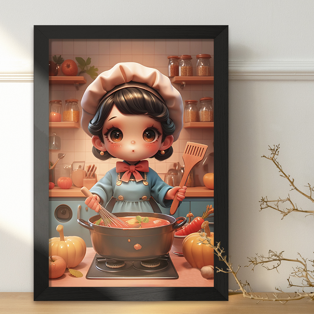 تابلو یا قاب عکس دختر آشپز خندالو در ابعاد مختلف با استفاده از بهترین برند پروفیل پی وی سی دو سانتی متری بسیار مرغوب، تولید شده اند و در مونتاژ و نصب آنها نهایت دقت در قرارگیری هر چه دقیق تر لبه ها به یکدیگر صورت گرفته است. همچنین در پشت قاب ها گیره ای برای اتصال راحت به دیوار تعبیه شده است. چاپ طرح تابلوی دختر آشپز با بالاترین کیفیت بوسیله چاپگرهای دیجیتال شش رنگ و کاغذ با کیفیت عکاسی انجام شده و بر روی آن شیشه ای با کیفیت و شفاف در سطح قاب قرار گرفته که از کاغذ عکس محافظت میکند. بسته بندی تابلوها جعبه های مقاوم و محکمی بوده که علاوه بر محافظتی که از بدنه قاب می کند، ظاهر جذابی دارد و تابلوی دختر آشپز را بدل به محصولی مناسب هدیه کرده است. تابلوهای خندالو با تنوع طرحی بسیار بالا شامل تابلو های دکوراتیو قابل استفاده در اتاق کودک، محل کار و منازل می باشد که سلیقه هر مخاطبی را پوشش می دهد، ضمن اینکه امکان تعویض عکس موجود در قاب وجود داشته و می توان عکس های خانوادگی و … را نیز در آن قرار داد.