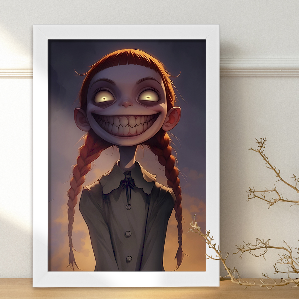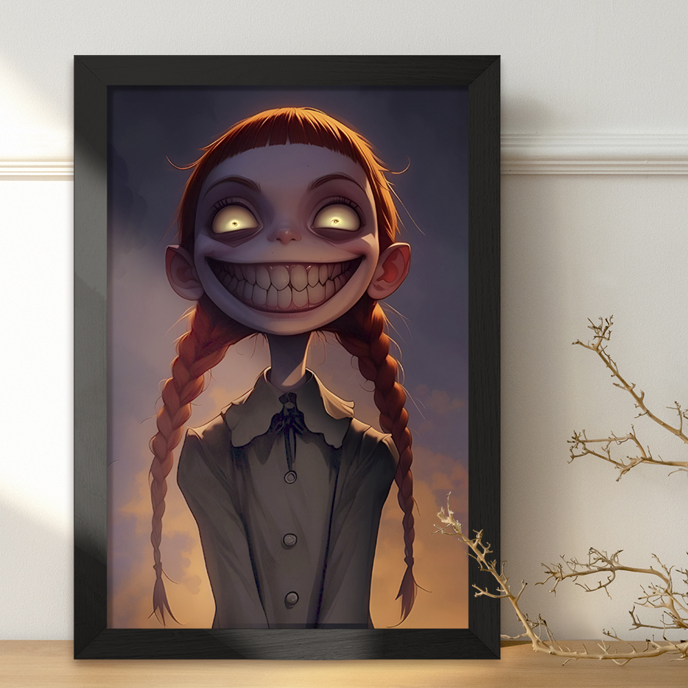 تابلو یا قاب عکس دختر خون آشام خندالو در ابعاد مختلف با استفاده از بهترین برند پروفیل پی وی سی دو سانتی متری بسیار مرغوب، تولید شده اند و در مونتاژ و نصب آنها نهایت دقت در قرارگیری هر چه دقیق تر لبه ها به یکدیگر صورت گرفته است. همچنین در پشت قاب ها گیره ای برای اتصال راحت به دیوار تعبیه شده است. چاپ طرح تابلوی دختر خون آشام با بالاترین کیفیت بوسیله چاپگرهای دیجیتال شش رنگ و کاغذ با کیفیت عکاسی انجام شده و بر روی آن شیشه ای با کیفیت و شفاف در سطح قاب قرار گرفته که از کاغذ عکس محافظت میکند. بسته بندی تابلوها جعبه های مقاوم و محکمی بوده که علاوه بر محافظتی که از بدنه قاب می کند، ظاهر جذابی دارد و تابلوی دختر خون آشام را بدل به محصولی مناسب هدیه کرده است. تابلوهای خندالو با تنوع طرحی بسیار بالا شامل تابلو های دکوراتیو قابل استفاده در اتاق کودک، محل کار و منازل می باشد که سلیقه هر مخاطبی را پوشش می دهد، ضمن اینکه امکان تعویض عکس موجود در قاب وجود داشته و می توان عکس های خانوادگی و … را نیز در آن قرار داد.