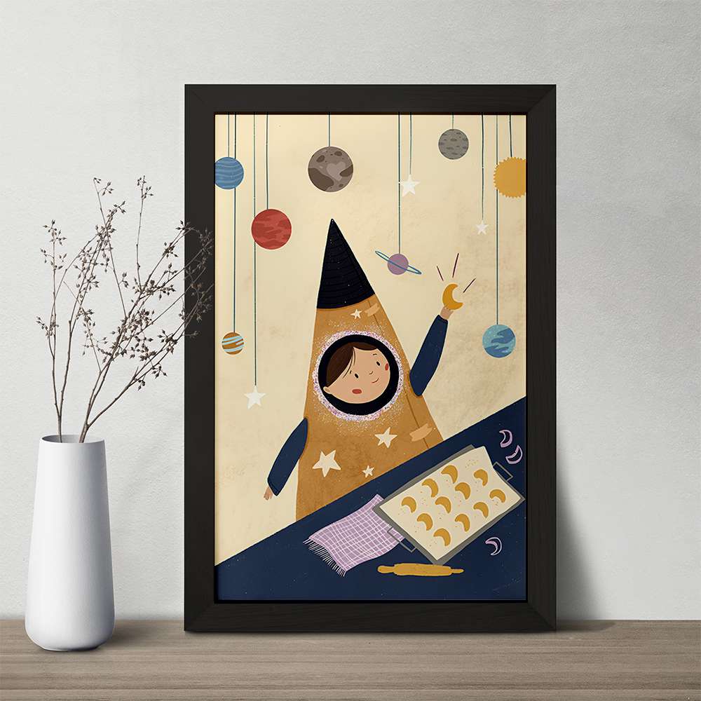 تابلو یا قاب عکس دختر عشق ماه شیرینی پز خندالو در ابعاد مختلف با استفاده از بهترین برند پروفیل پی وی سی دو سانتی متری بسیار مرغوب، تولید شده اند و در مونتاژ و نصب آنها نهایت دقت در قرارگیری هر چه دقیق تر لبه ها به یکدیگر صورت گرفته است. همچنین در پشت قاب ها گیره ای برای اتصال راحت به دیوار تعبیه شده است. چاپ طرح تابلوی دختر عشق ماه شیرینی پز با بالاترین کیفیت بوسیله چاپگرهای دیجیتال شش رنگ و کاغذ با کیفیت عکاسی انجام شده و بر روی آن شیشه ای با کیفیت و شفاف در سطح قاب قرار گرفته که از کاغذ عکس محافظت میکند. بسته بندی تابلوها جعبه های مقاوم و محکمی بوده که علاوه بر محافظتی که از بدنه قاب می کند، ظاهر جذابی دارد و تابلوی دختر عشق ماه شیرینی پز را بدل به محصولی مناسب هدیه کرده است. تابلوهای خندالو با تنوع طرحی بسیار بالا شامل تابلو های دکوراتیو قابل استفاده در اتاق کودک، محل کار و منازل می باشد که سلیقه هر مخاطبی را پوشش می دهد، ضمن اینکه امکان تعویض عکس موجود در قاب وجود داشته و می توان عکس های خانوادگی و … را نیز در آن قرار داد.
