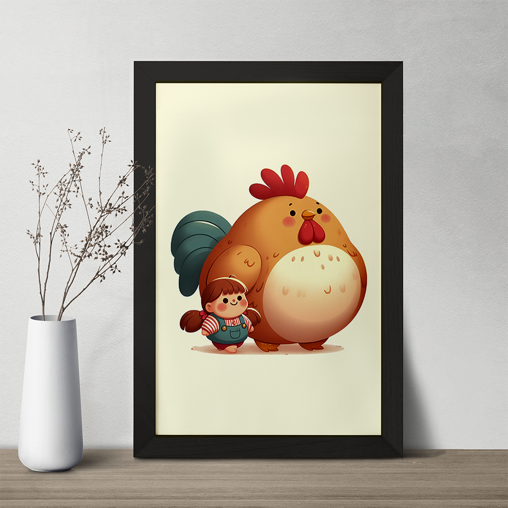 تابلو یا قاب عکس دختر و خروس کیوت خندالو در ابعاد مختلف با استفاده از بهترین برند پروفیل پی وی سی دو سانتی متری بسیار مرغوب، تولید شده اند و در مونتاژ و نصب آنها نهایت دقت در قرارگیری هر چه دقیق تر لبه ها به یکدیگر صورت گرفته است. همچنین در پشت قاب ها گیره ای برای اتصال راحت به دیوار تعبیه شده است. چاپ طرح تابلوی دختر و خروس کیوت با بالاترین کیفیت بوسیله چاپگرهای دیجیتال شش رنگ و کاغذ با کیفیت عکاسی انجام شده و بر روی آن شیشه ای با کیفیت و شفاف در سطح قاب قرار گرفته که از کاغذ عکس محافظت میکند. بسته بندی تابلوها جعبه های مقاوم و محکمی بوده که علاوه بر محافظتی که از بدنه قاب می کند، ظاهر جذابی دارد و تابلوی دختر و خروس کیوت را بدل به محصولی مناسب هدیه کرده است. تابلوهای خندالو با تنوع طرحی بسیار بالا شامل تابلو های دکوراتیو قابل استفاده در اتاق کودک، محل کار و منازل می باشد که سلیقه هر مخاطبی را پوشش می دهد، ضمن اینکه امکان تعویض عکس موجود در قاب وجود داشته و می توان عکس های خانوادگی و … را نیز در آن قرار داد.