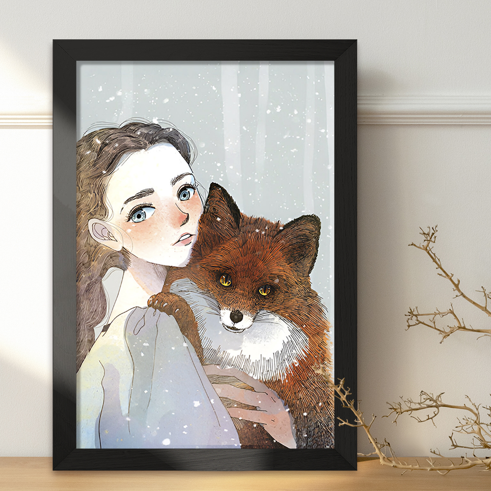 تابلو یا قاب عکس دختر و روباه خندالو در ابعاد مختلف با استفاده از بهترین برند پروفیل پی وی سی دو سانتی متری بسیار مرغوب، تولید شده اند و در مونتاژ و نصب آنها نهایت دقت در قرارگیری هر چه دقیق تر لبه ها به یکدیگر صورت گرفته است. همچنین در پشت قاب ها گیره ای برای اتصال راحت به دیوار تعبیه شده است.