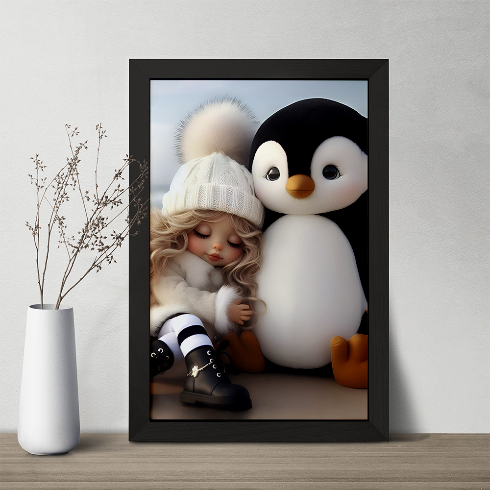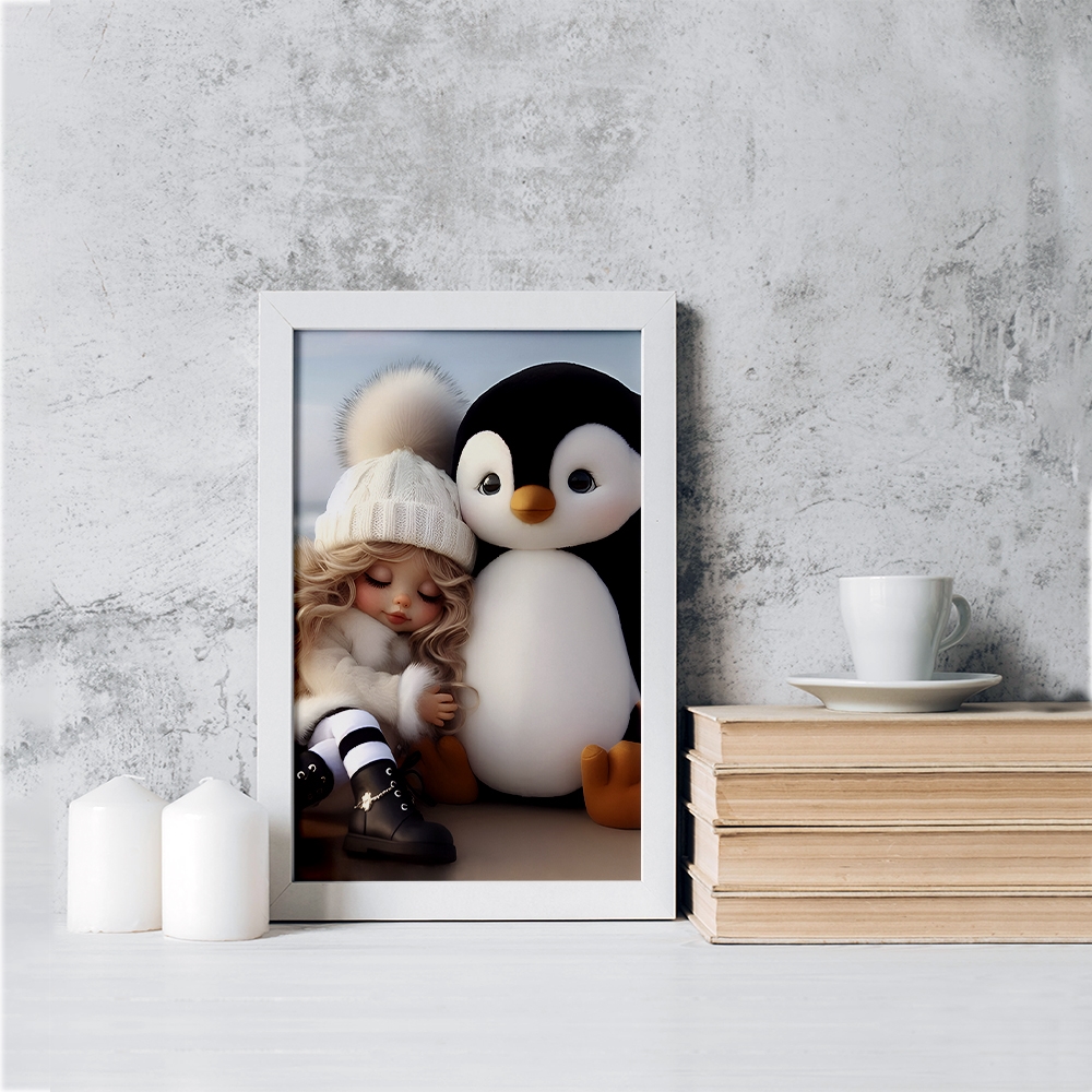 تابلو یا قاب عکس دختر و عروسک پنگوئن خندالو در ابعاد مختلف با استفاده از بهترین برند پروفیل پی وی سی دو سانتی متری بسیار مرغوب، تولید شده اند و در مونتاژ و نصب آنها نهایت دقت در قرارگیری هر چه دقیق تر لبه ها به یکدیگر صورت گرفته است. همچنین در پشت قاب ها گیره ای برای اتصال راحت به دیوار تعبیه شده است. چاپ طرح تابلوی دختر و عروسک پنگوئن با بالاترین کیفیت بوسیله چاپگرهای دیجیتال شش رنگ و کاغذ با کیفیت عکاسی انجام شده و بر روی آن شیشه ای با کیفیت و شفاف در سطح قاب قرار گرفته که از کاغذ عکس محافظت میکند. بسته بندی تابلوها جعبه های مقاوم و محکمی بوده که علاوه بر محافظتی که از بدنه قاب می کند، ظاهر جذابی دارد و تابلوی دختر و عروسک پنگوئن را بدل به محصولی مناسب هدیه کرده است. تابلوهای خندالو با تنوع طرحی بسیار بالا شامل تابلو های دکوراتیو قابل استفاده در اتاق کودک، محل کار و منازل می باشد که سلیقه هر مخاطبی را پوشش می دهد، ضمن اینکه امکان تعویض عکس موجود در قاب وجود داشته و می توان عکس های خانوادگی و … را نیز در آن قرار داد.
