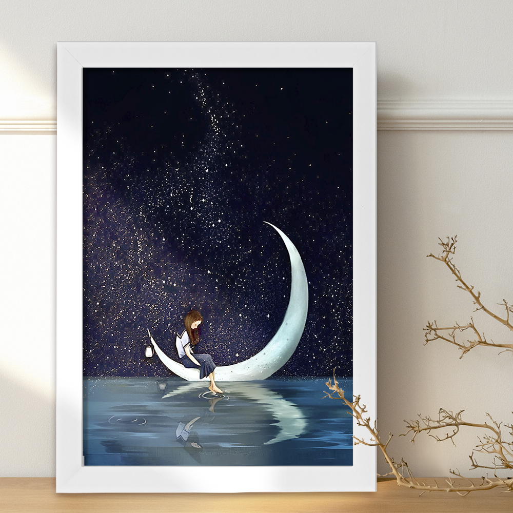 تابلو یا قاب عکس دختر و ماه خندالو در ابعاد مختلف با استفاده از بهترین برند پروفیل پی وی سی دو سانتی متری بسیار مرغوب، تولید شده اند و در مونتاژ و نصب آنها نهایت دقت در قرارگیری هر چه دقیق تر لبه ها به یکدیگر صورت گرفته است. همچنین در پشت قاب ها گیره ای برای اتصال راحت به دیوار تعبیه شده است.