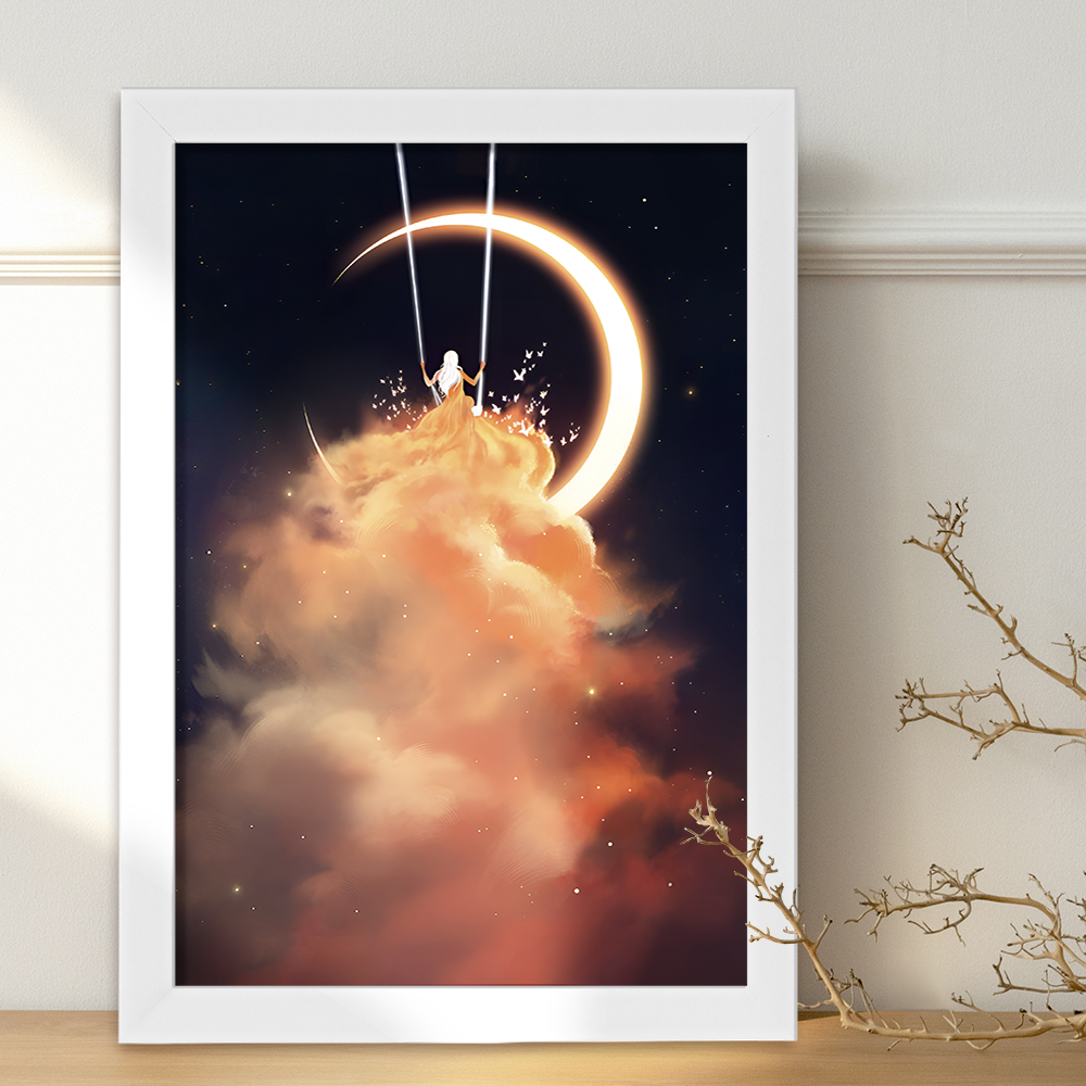 تابلو یا قاب عکس دختر و ماه خندالو در ابعاد مختلف با استفاده از بهترین برند پروفیل پی وی سی دو سانتی متری بسیار مرغوب، تولید شده اند و در مونتاژ و نصب آنها نهایت دقت در قرارگیری هر چه دقیق تر لبه ها به یکدیگر صورت گرفته است. همچنین در پشت قاب ها گیره ای برای اتصال راحت به دیوار تعبیه شده است. چاپ طرح تابلوی دختر و ماه با بالاترین کیفیت بوسیله چاپگرهای دیجیتال شش رنگ و کاغذ با کیفیت عکاسی انجام شده و بر روی آن شیشه ای با کیفیت و شفاف در سطح قاب قرار گرفته که از کاغذ عکس محافظت میکند. بسته بندی تابلوها جعبه های مقاوم و محکمی بوده که علاوه بر محافظتی که از بدنه قاب می کند، ظاهر جذابی دارد و تابلوی دختر و ماه را بدل به محصولی مناسب هدیه کرده است. تابلوهای خندالو با تنوع طرحی بسیار بالا شامل تابلو های دکوراتیو قابل استفاده در اتاق کودک، محل کار و منازل می باشد که سلیقه هر مخاطبی را پوشش می دهد، ضمن اینکه امکان تعویض عکس موجود در قاب وجود داشته و می توان عکس های خانوادگی و … را نیز در آن قرار داد.