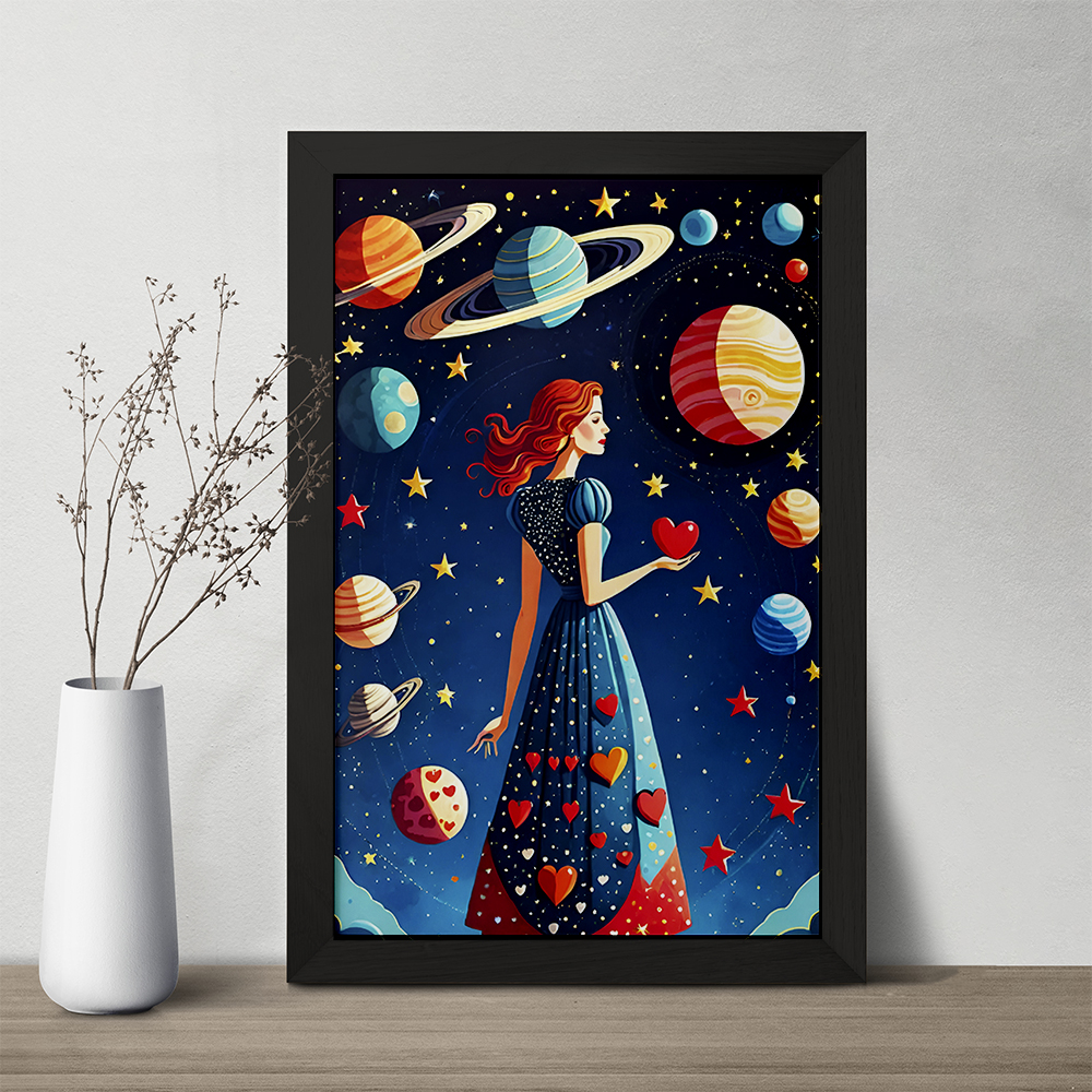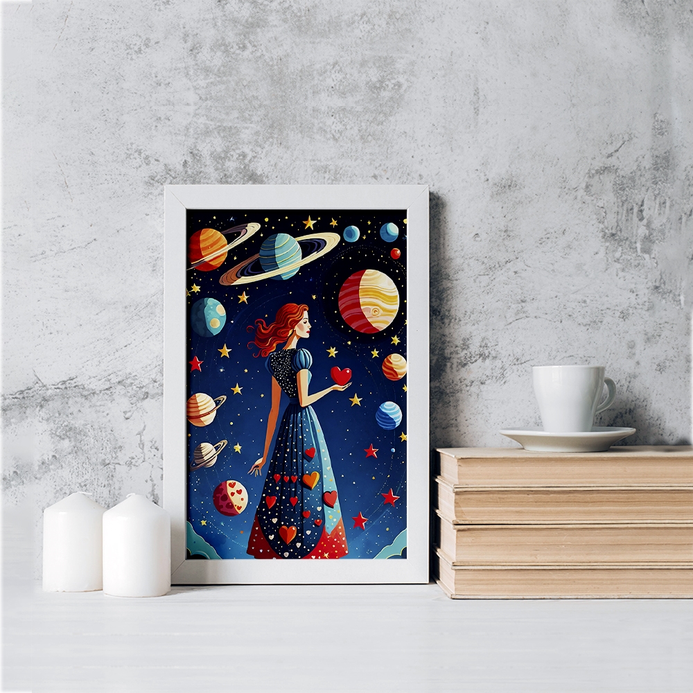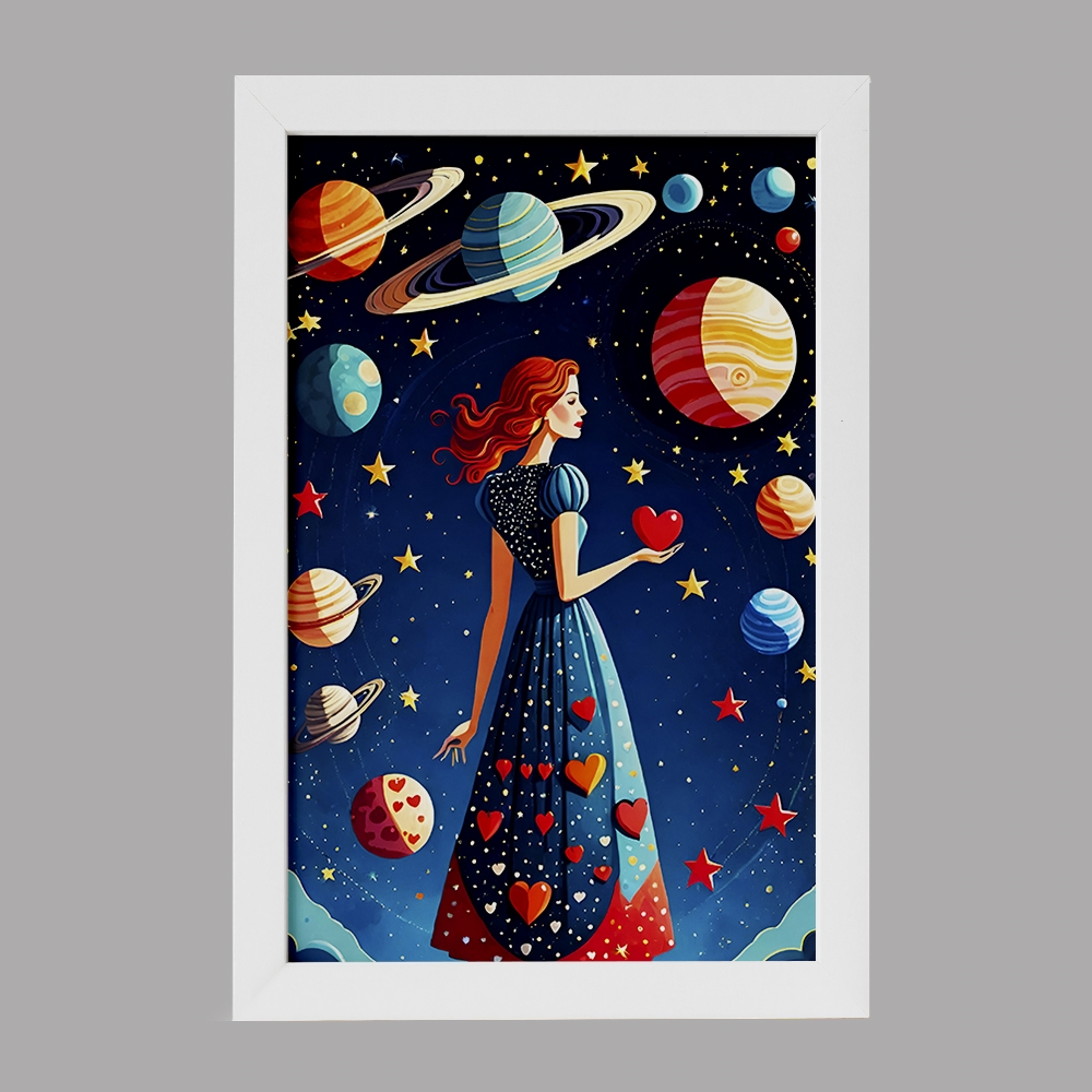 تابلو یا قاب عکس دختر و کهکشان خندالو در ابعاد مختلف با استفاده از بهترین برند پروفیل پی وی سی دو سانتی متری بسیار مرغوب، تولید شده اند و در مونتاژ و نصب آنها نهایت دقت در قرارگیری هر چه دقیق تر لبه ها به یکدیگر صورت گرفته است. همچنین در پشت قاب ها گیره ای برای اتصال راحت به دیوار تعبیه شده است. چاپ طرح تابلوی دختر و کهکشان با بالاترین کیفیت بوسیله چاپگرهای دیجیتال شش رنگ و کاغذ با کیفیت عکاسی انجام شده و بر روی آن شیشه ای با کیفیت و شفاف در سطح قاب قرار گرفته که از کاغذ عکس محافظت میکند. بسته بندی تابلوها جعبه های مقاوم و محکمی بوده که علاوه بر محافظتی که از بدنه قاب می کند، ظاهر جذابی دارد و تابلوی دختر و کهکشان را بدل به محصولی مناسب هدیه کرده است. تابلوهای خندالو با تنوع طرحی بسیار بالا شامل تابلو های دکوراتیو قابل استفاده در اتاق کودک، محل کار و منازل می باشد که سلیقه هر مخاطبی را پوشش می دهد، ضمن اینکه امکان تعویض عکس موجود در قاب وجود داشته و می توان عکس های خانوادگی و … را نیز در آن قرار داد.
