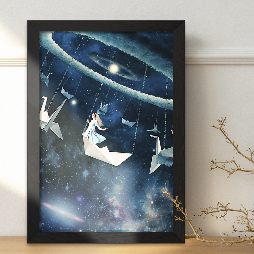 تابلو یا قاب عکس دختر و کهکشان خندالو در ابعاد مختلف با استفاده از بهترین برند پروفیل پی وی سی دو سانتی متری بسیار مرغوب، تولید شده اند و در مونتاژ و نصب آنها نهایت دقت در قرارگیری هر چه دقیق تر لبه ها به یکدیگر صورت گرفته است. همچنین در پشت قاب ها گیره ای برای اتصال راحت به دیوار تعبیه شده است. چاپ طرح تابلوی دختر و کهکشان با بالاترین کیفیت بوسیله چاپگرهای دیجیتال شش رنگ و کاغذ با کیفیت عکاسی انجام شده و بر روی آن شیشه ای با کیفیت و شفاف در سطح قاب قرار گرفته که از کاغذ عکس محافظت میکند. بسته بندی تابلوها جعبه های مقاوم و محکمی بوده که علاوه بر محافظتی که از بدنه قاب می کند، ظاهر جذابی دارد و تابلوی دختر و کهکشان را بدل به محصولی مناسب هدیه کرده است. تابلوهای خندالو با تنوع طرحی بسیار بالا شامل تابلو های دکوراتیو قابل استفاده در اتاق کودک، محل کار و منازل می باشد که سلیقه هر مخاطبی را پوشش می دهد، ضمن اینکه امکان تعویض عکس موجود در قاب وجود داشته و می توان عکس های خانوادگی و … را نیز در آن قرار داد.