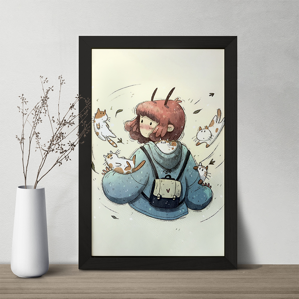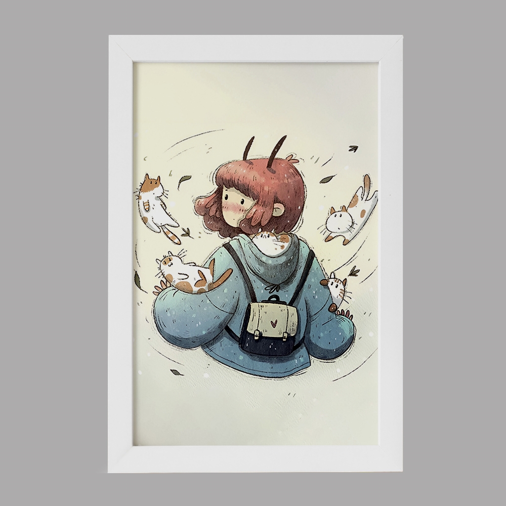 تابلو یا قاب عکس دختر و گربه های بامزه خندالو در ابعاد مختلف با استفاده از بهترین برند پروفیل پی وی سی دو سانتی متری بسیار مرغوب، تولید شده اند و در مونتاژ و نصب آنها نهایت دقت در قرارگیری هر چه دقیق تر لبه ها به یکدیگر صورت گرفته است. همچنین در پشت قاب ها گیره ای برای اتصال راحت به دیوار تعبیه شده است.